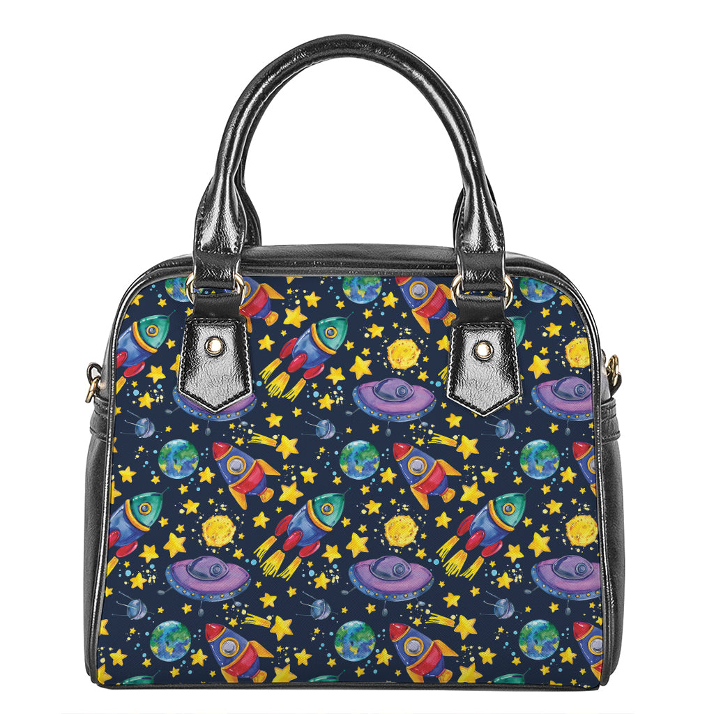 Watercolor Rocket Pattern Print Shoulder Handbag