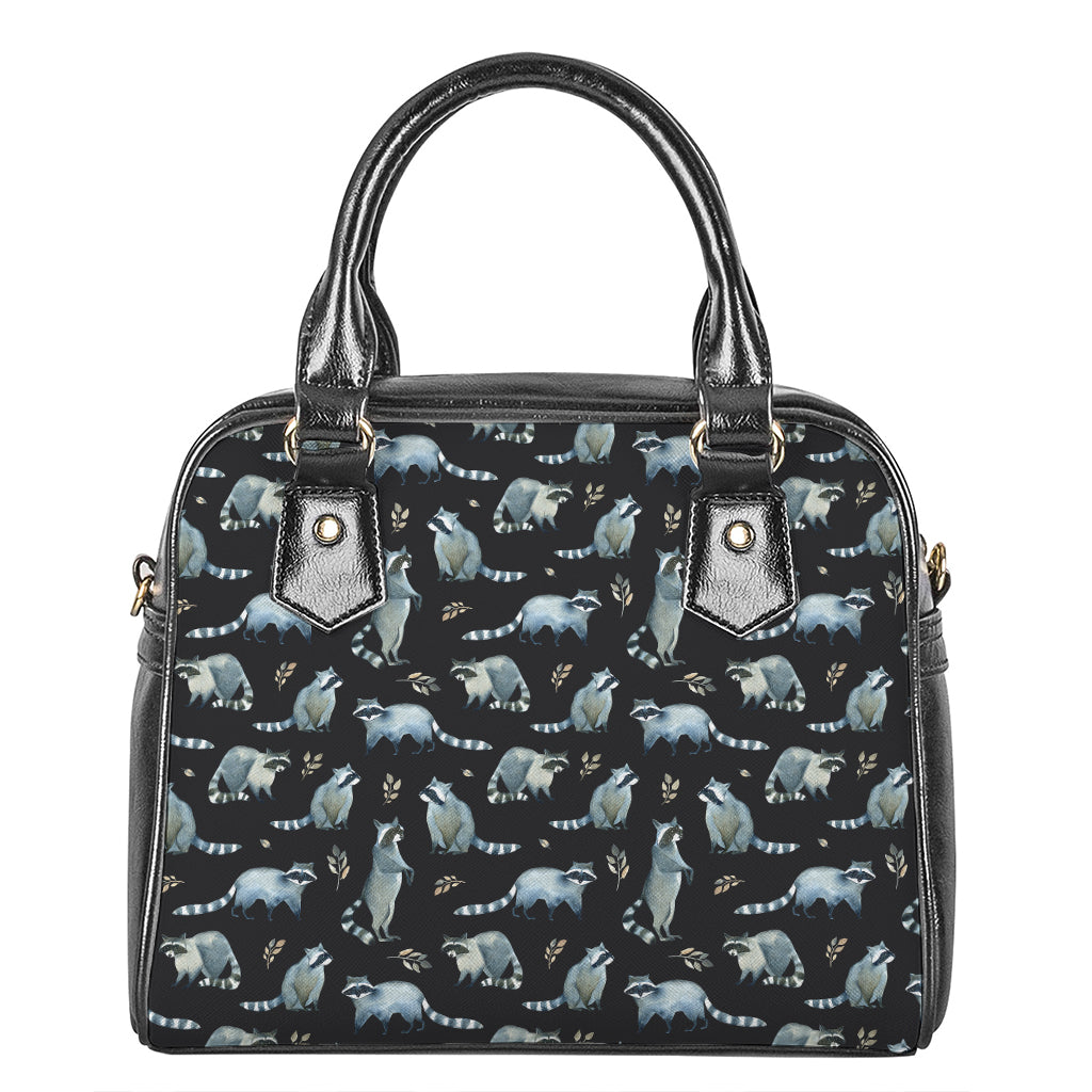 Watercolor Raccoon Pattern Print Shoulder Handbag