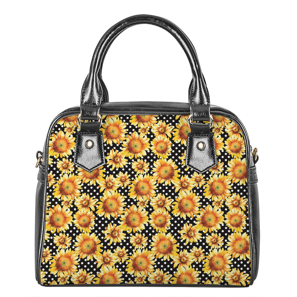 Watercolor Polka Dot Sunflower Print Shoulder Handbag