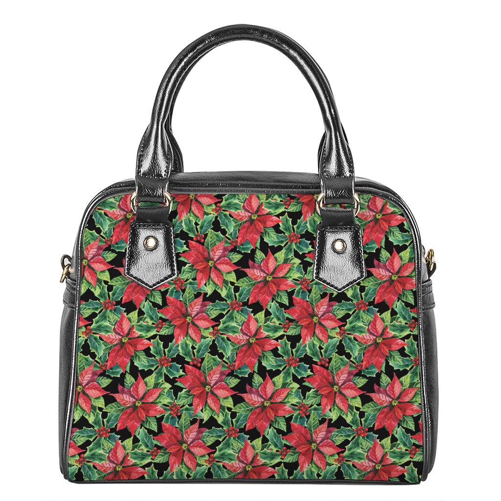Watercolor Poinsettia Pattern Print Shoulder Handbag