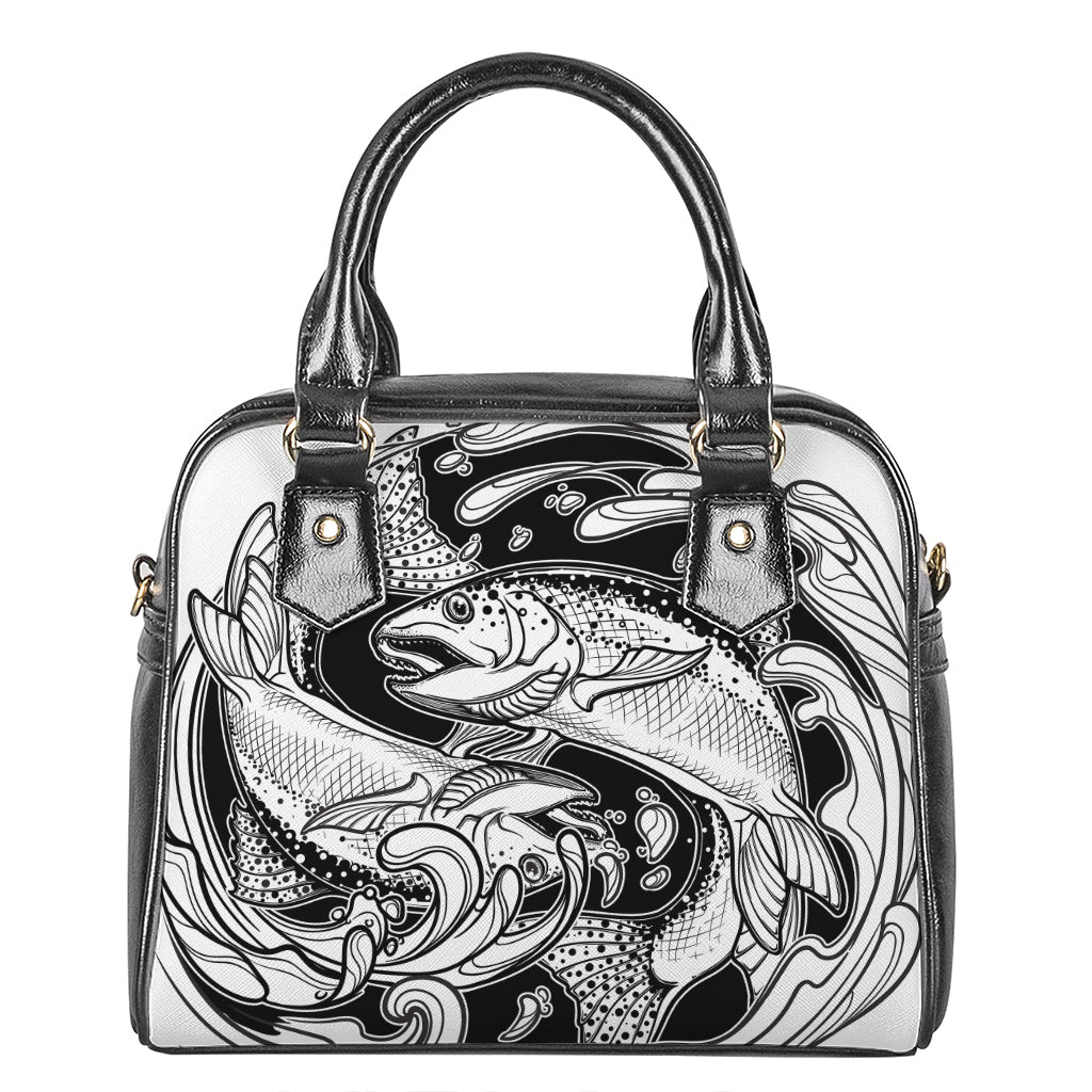 White And Black Pisces Sign Print Shoulder Handbag