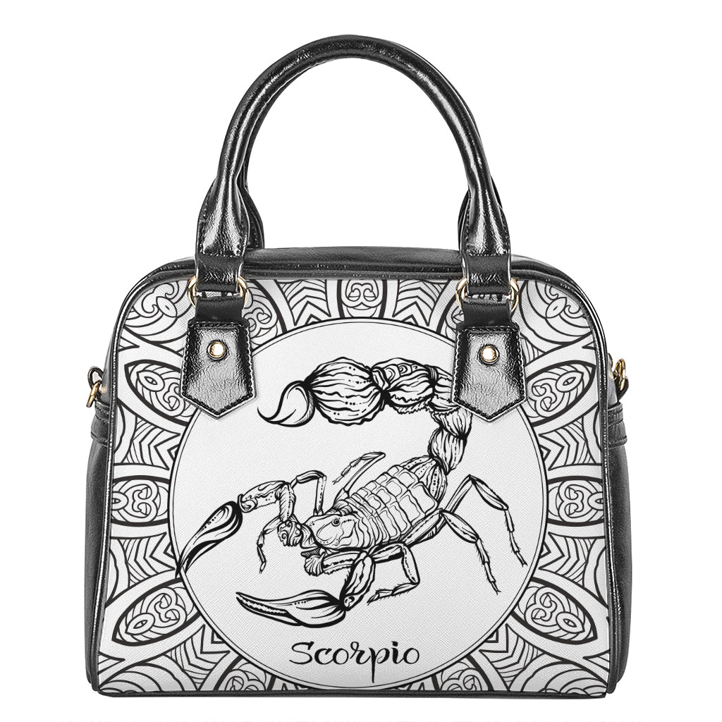 White And Black Scorpio Sign Print Shoulder Handbag