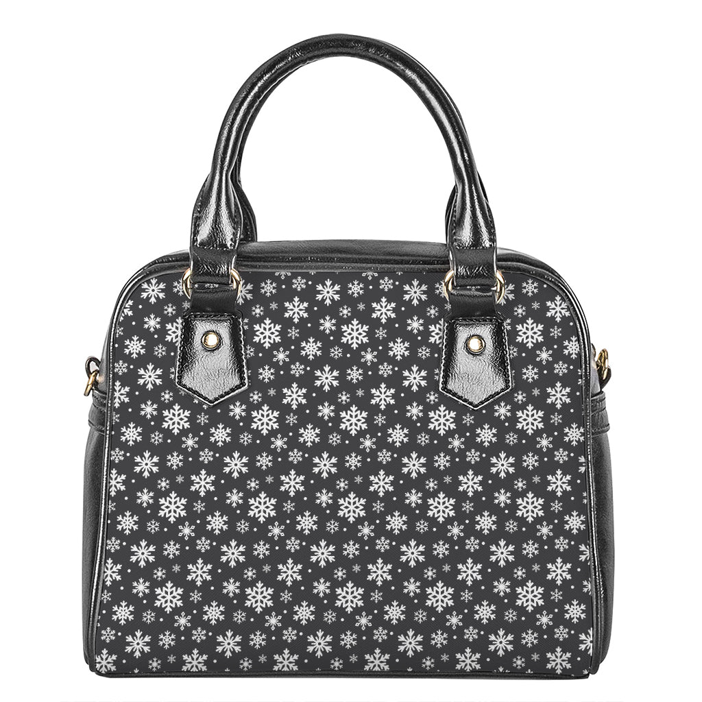 White And Grey Snowflake Pattern Print Shoulder Handbag