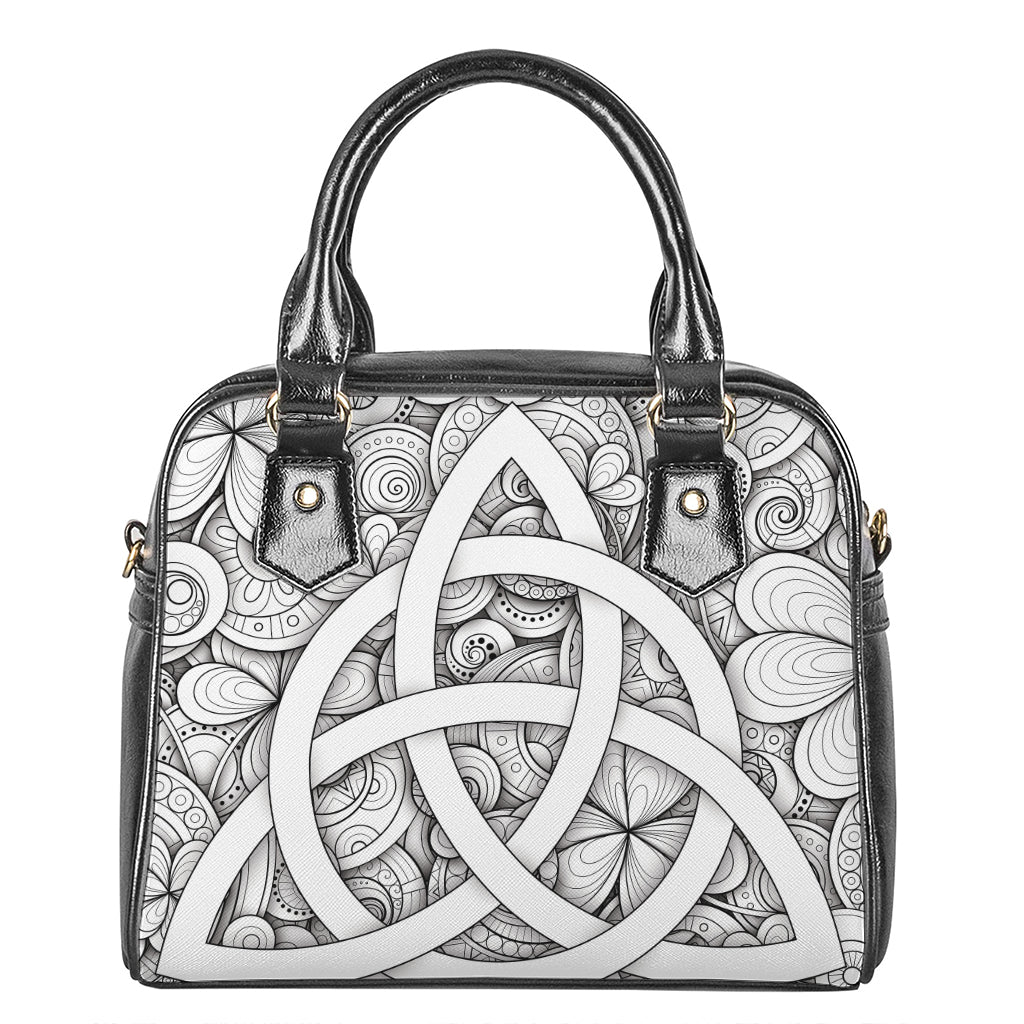 White Celtic Trinity Knot Symbol Print Shoulder Handbag