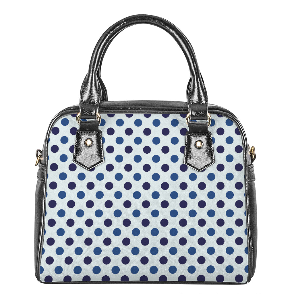 White And Blue Polka Dot Pattern Print Shoulder Handbag