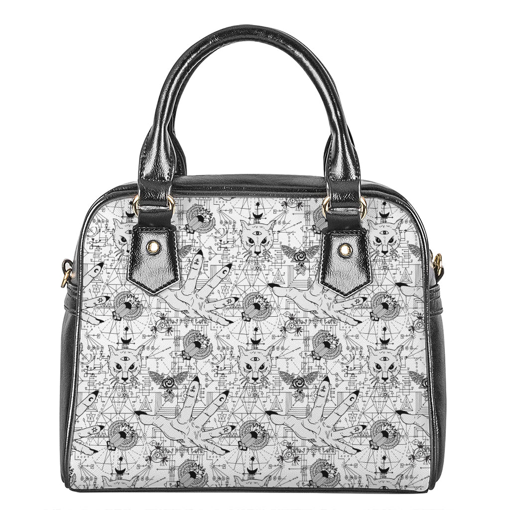 White And Black Wicca Magical Print Shoulder Handbag