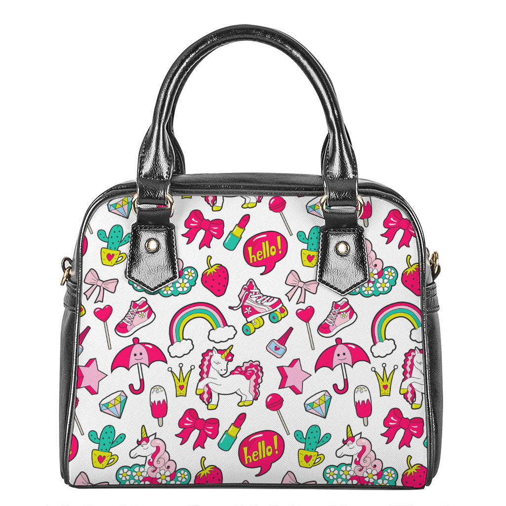 White Girly Unicorn Pattern Print Shoulder Handbag