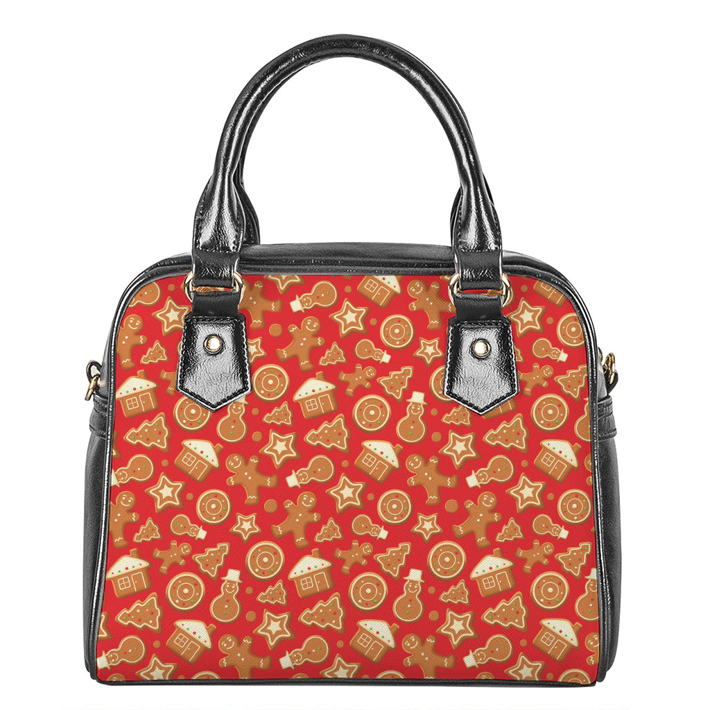 Xmas Gingerbread Pattern Print Shoulder Handbag