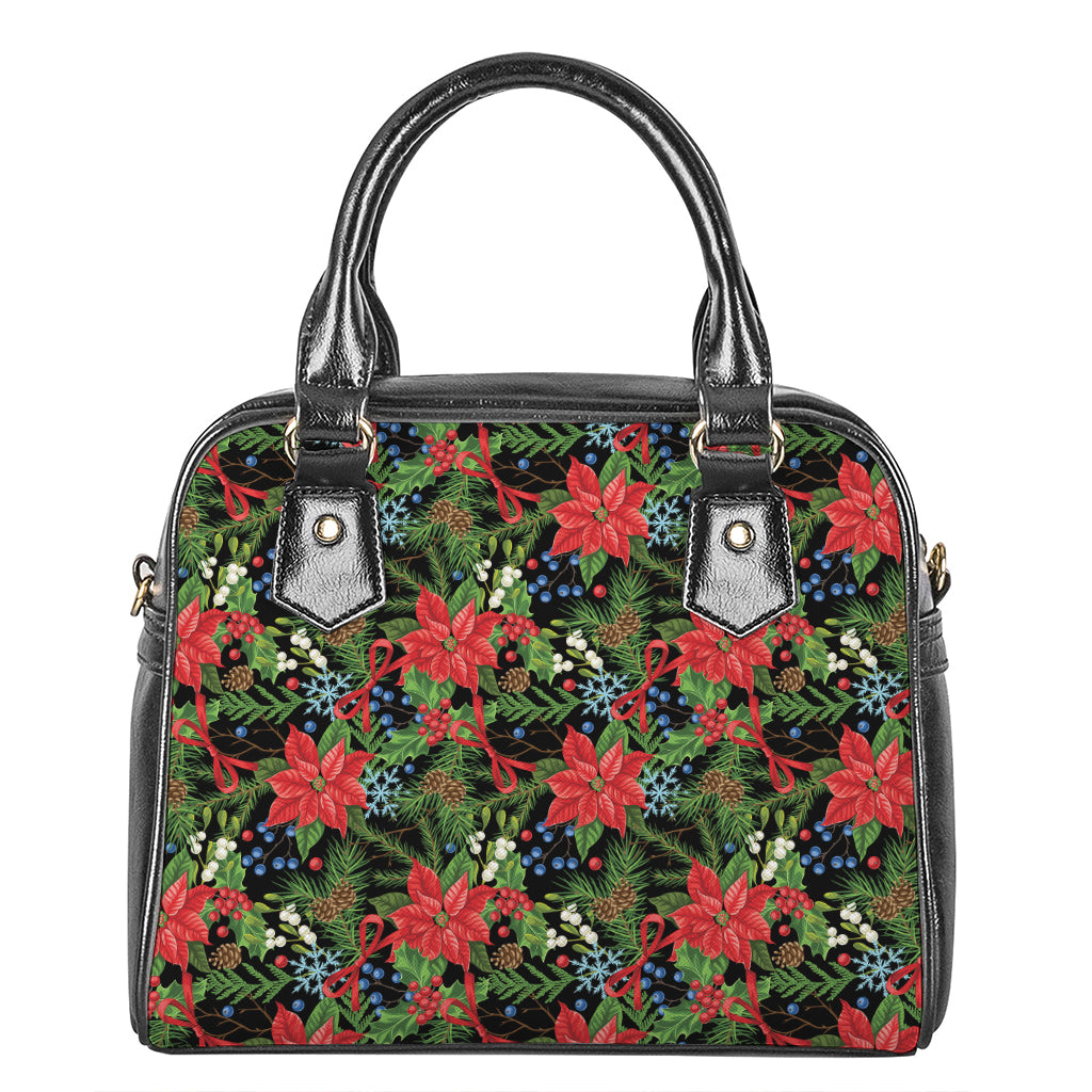 Xmas Poinsettia Pattern Print Shoulder Handbag