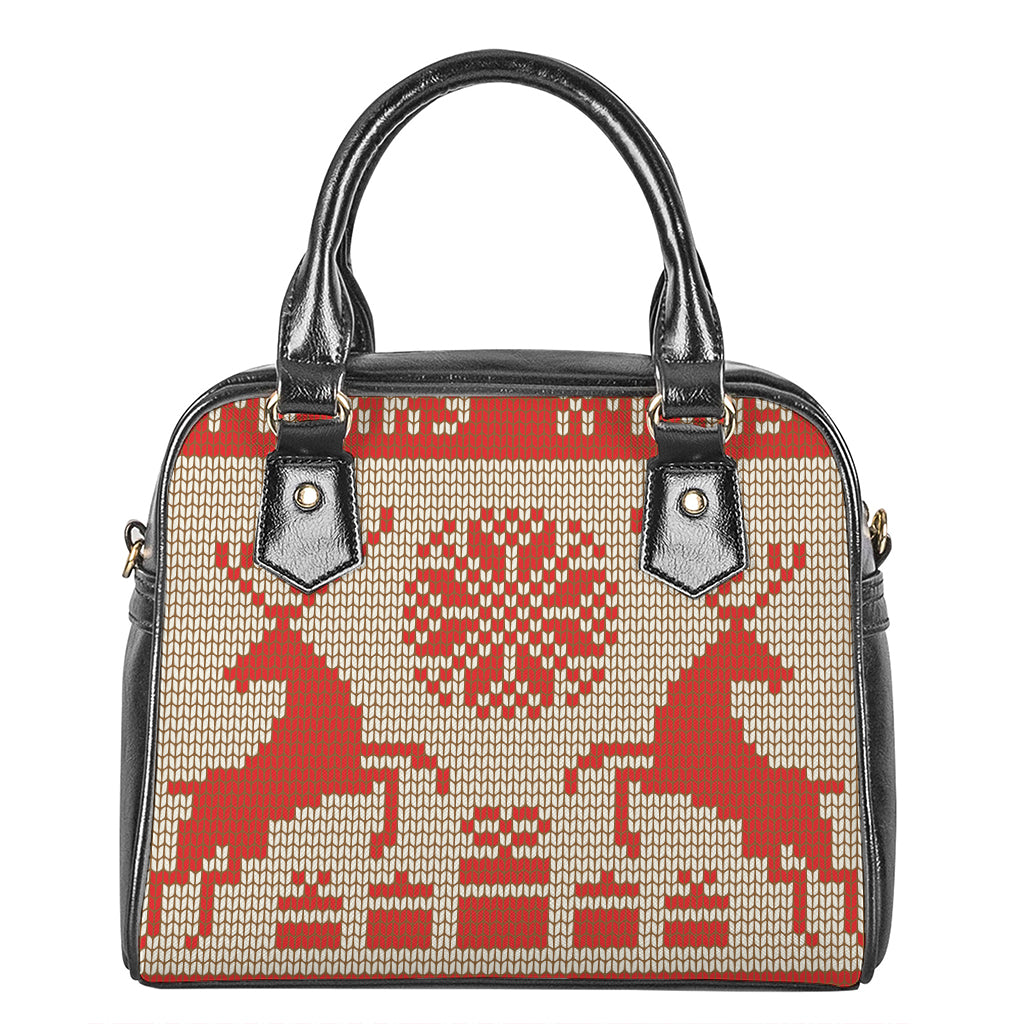 Xmas Deer Knitted Print Shoulder Handbag