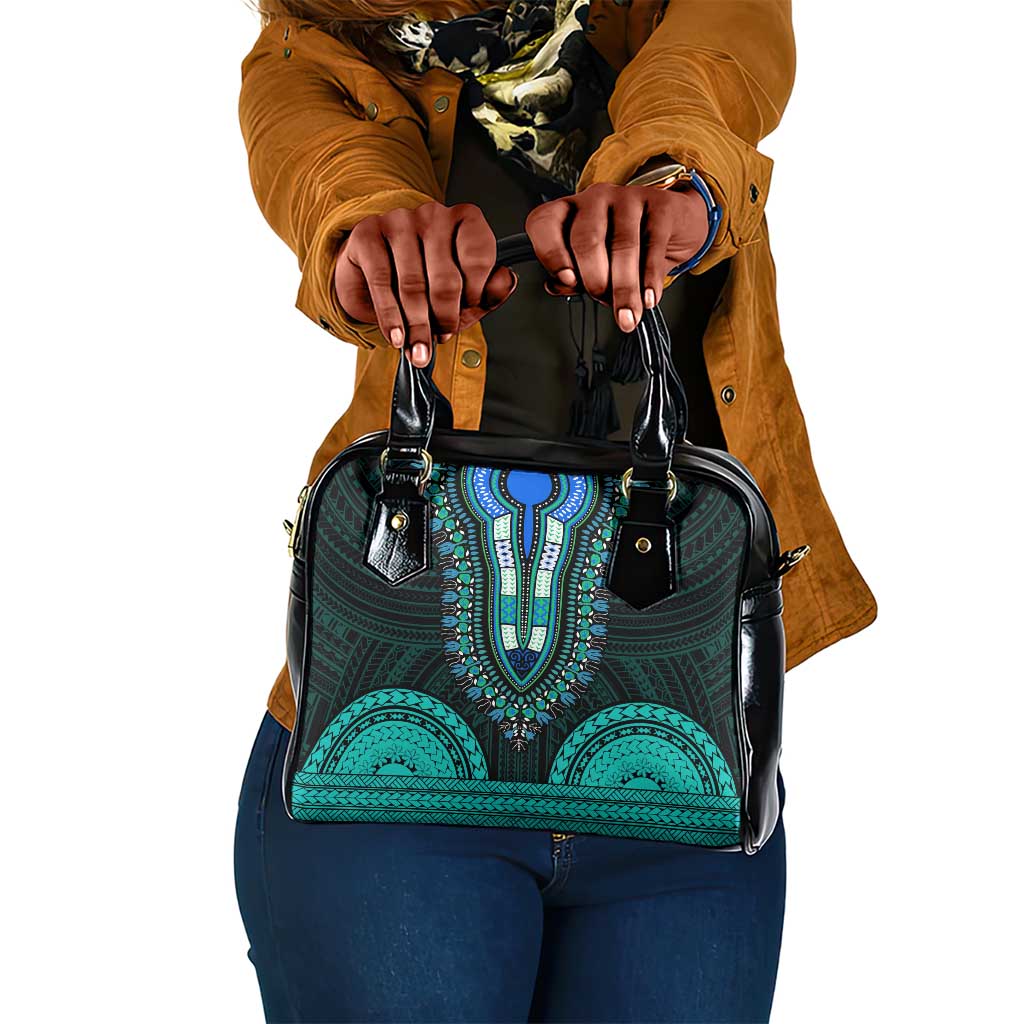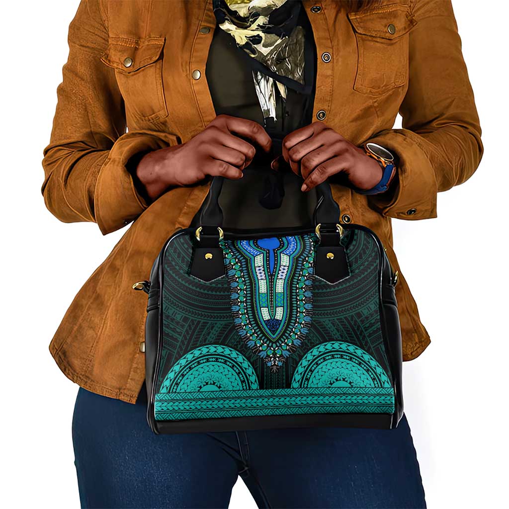 African Dashiki And Polynesian Pattern Shoulder Handbag Teal