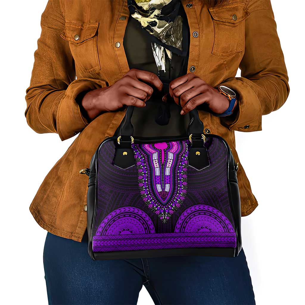 African Dashiki And Polynesian Pattern Shoulder Handbag Purple