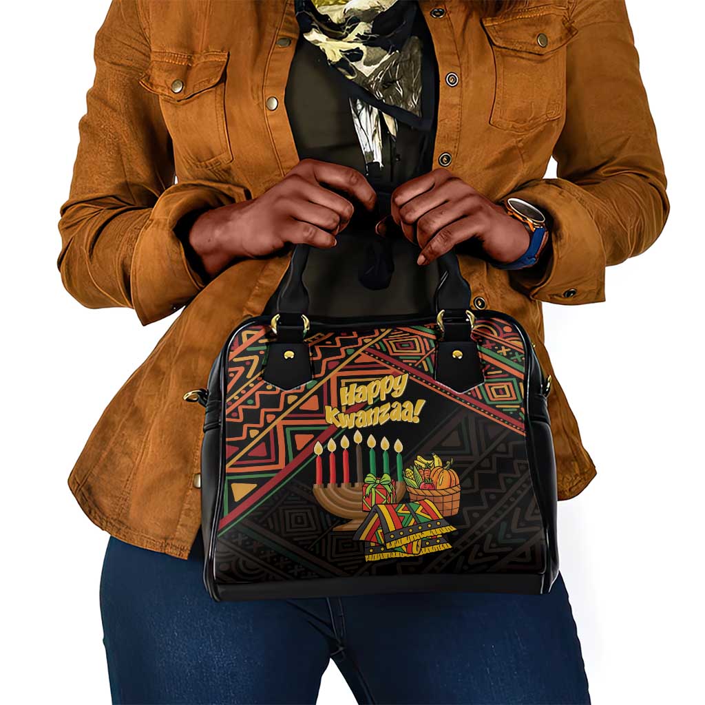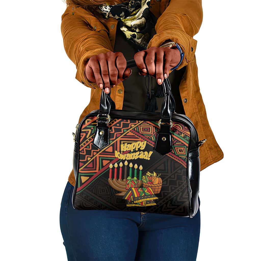 Kwanzaa Festival Shoulder Handbag With Kinara Candles And African Pattern quantity