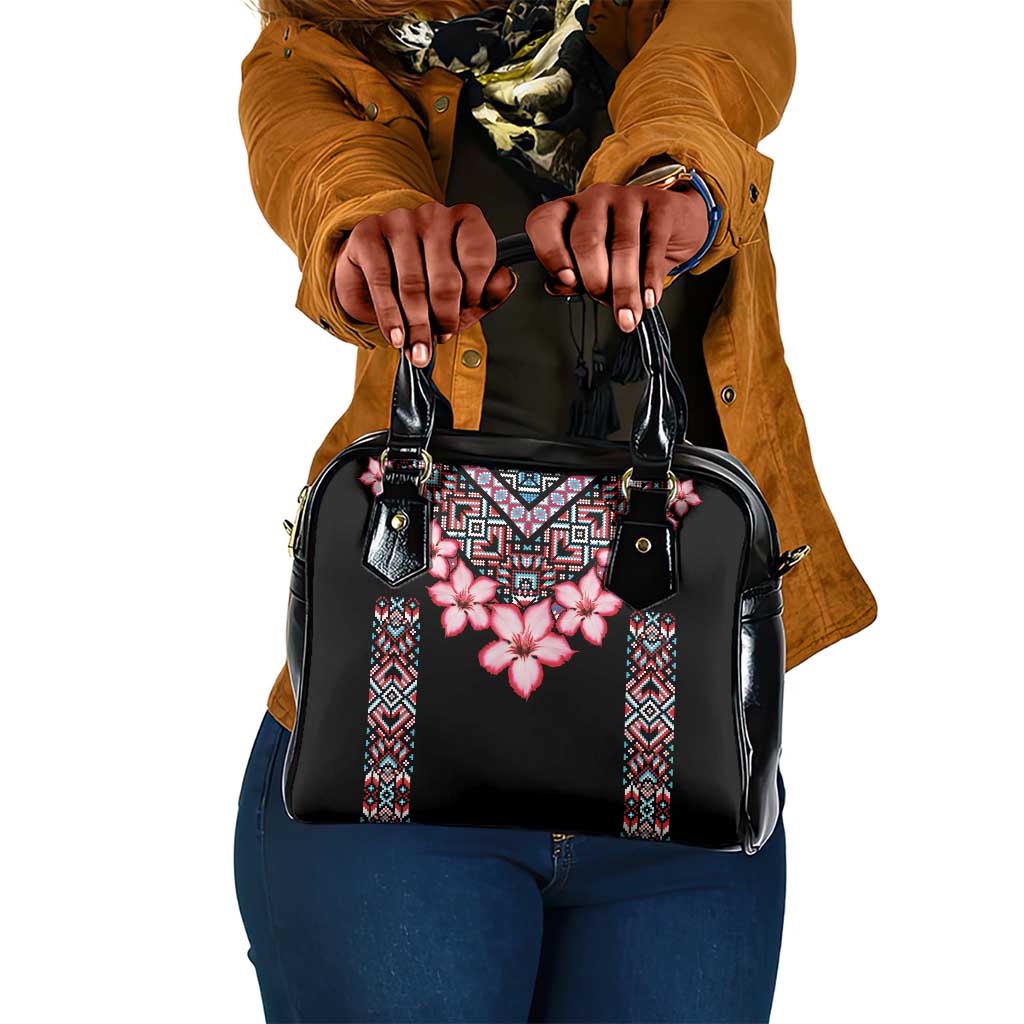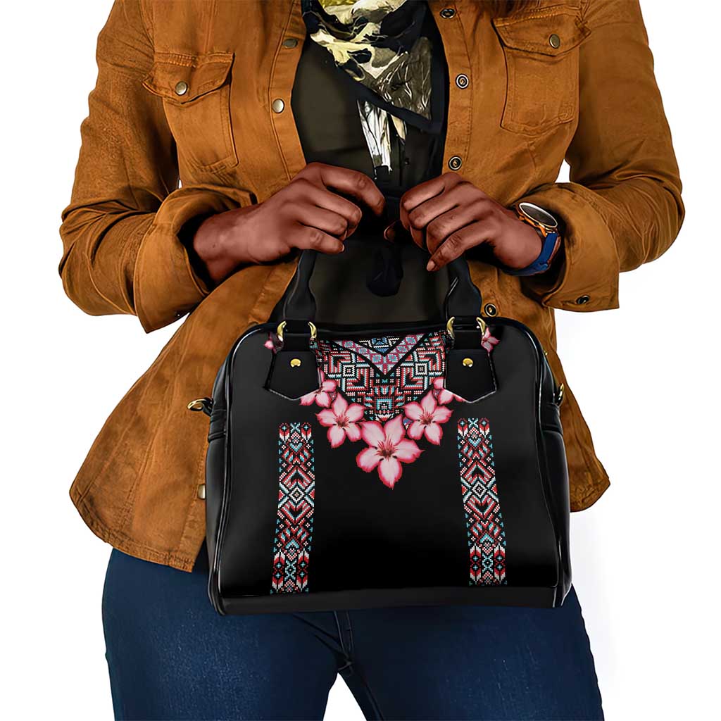 Afro Adenium Multiflorum Flowers Shoulder Handbag Mix Native Tribal Pattern