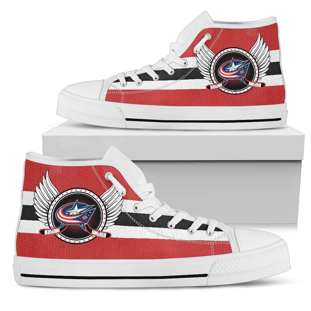 High Top Shoes Printed For Men And Women Columbus Blue Jackets Logo Vintage Biker Wings