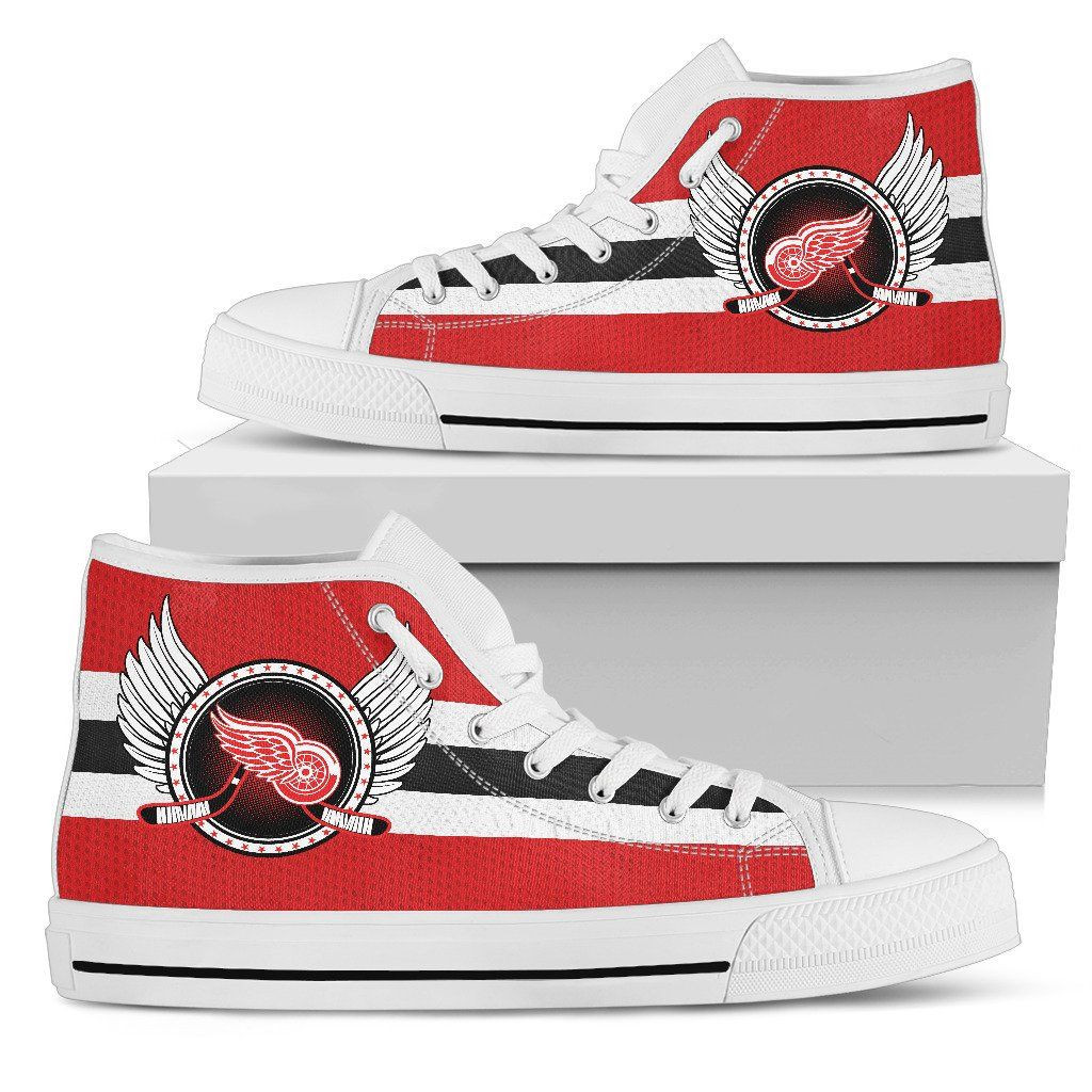 High Top Shoes Printed For Men And Women Detroit Red Wings Logo Vintage Biker Wings