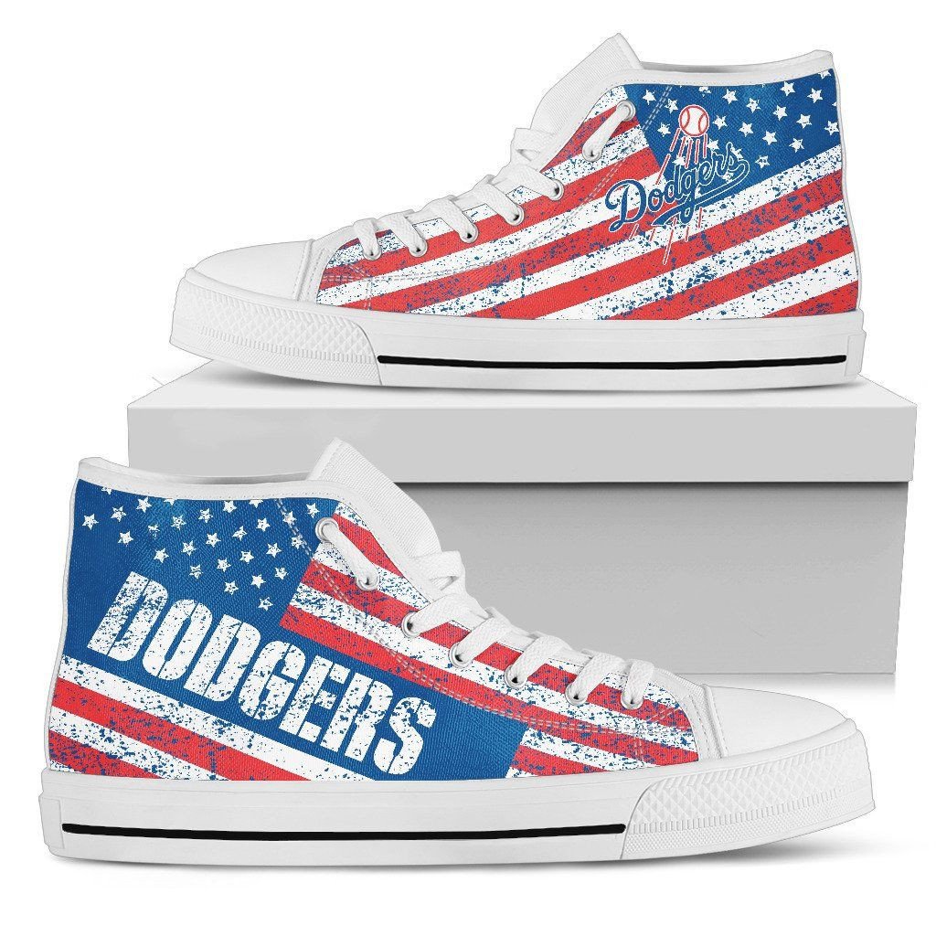 America Flag Italic Vintage Style Los Angeles Dodgers High Top Shoes Printed For Men And Women
