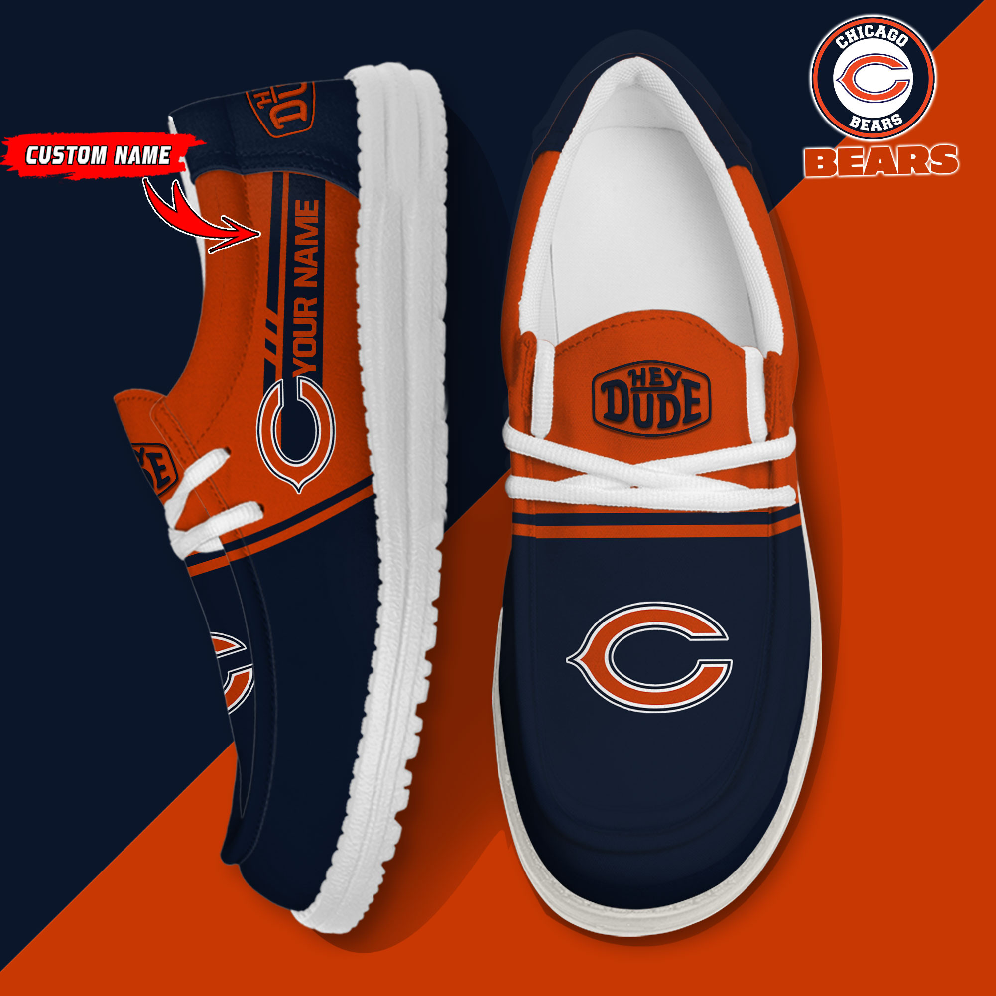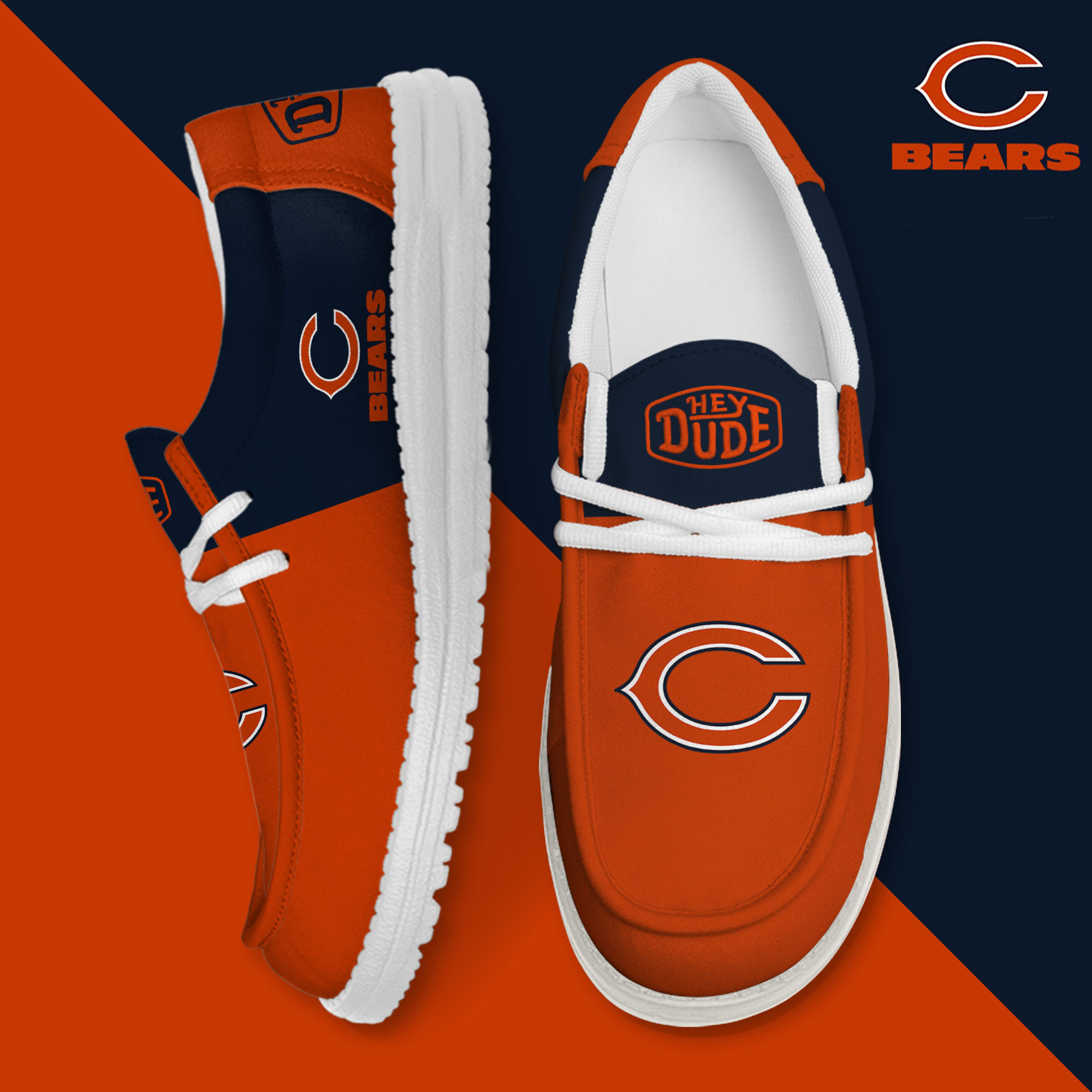 Chicago Bears Logo Pattern Hey Dude Shoes Printed For Men And Women