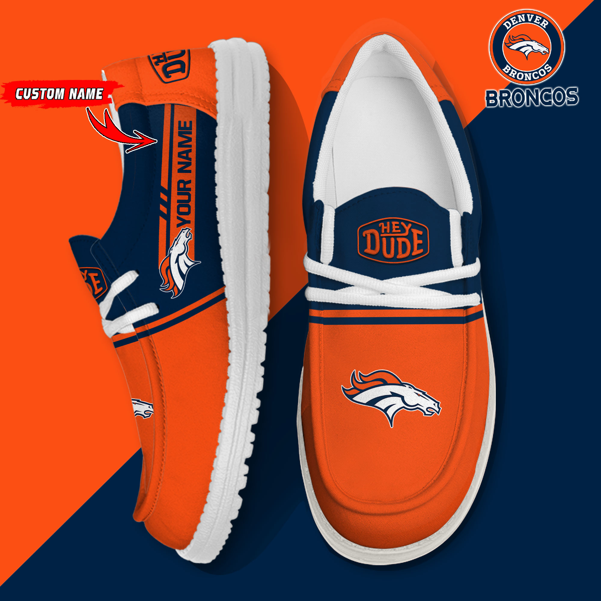 Denver Broncos Logo Pattern Hey Dude Shoes Printed For Men And Women