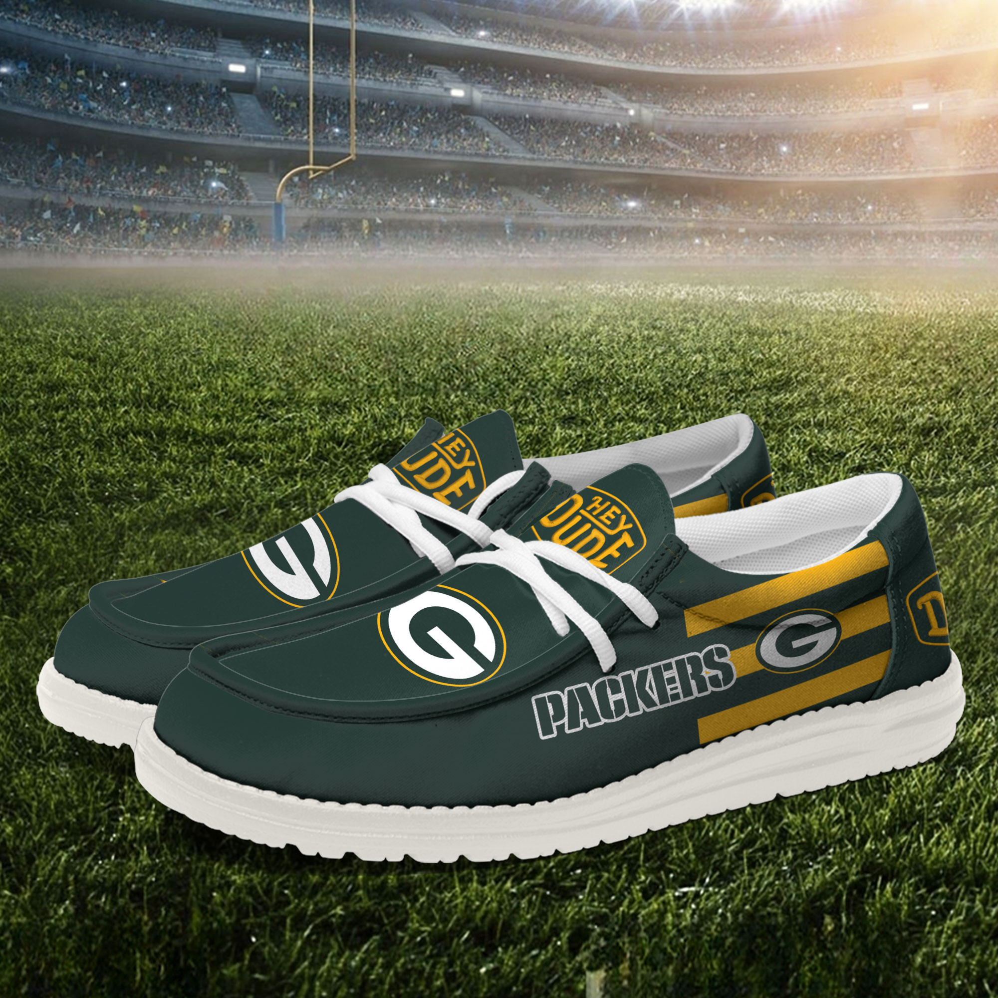 Green Bay Packers Football Hey Dude Canvas Loafer Shoes