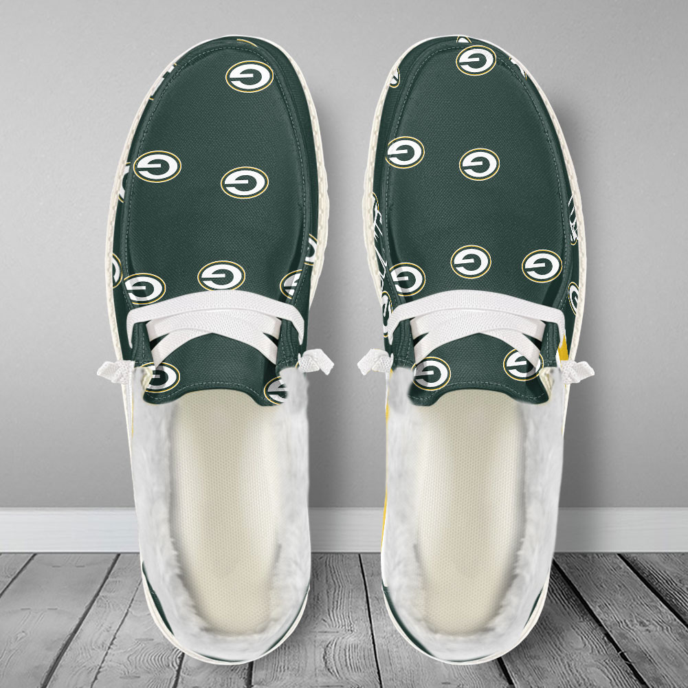 Green Bay Packers Hey Dude With Warm Fur Lining Shoes