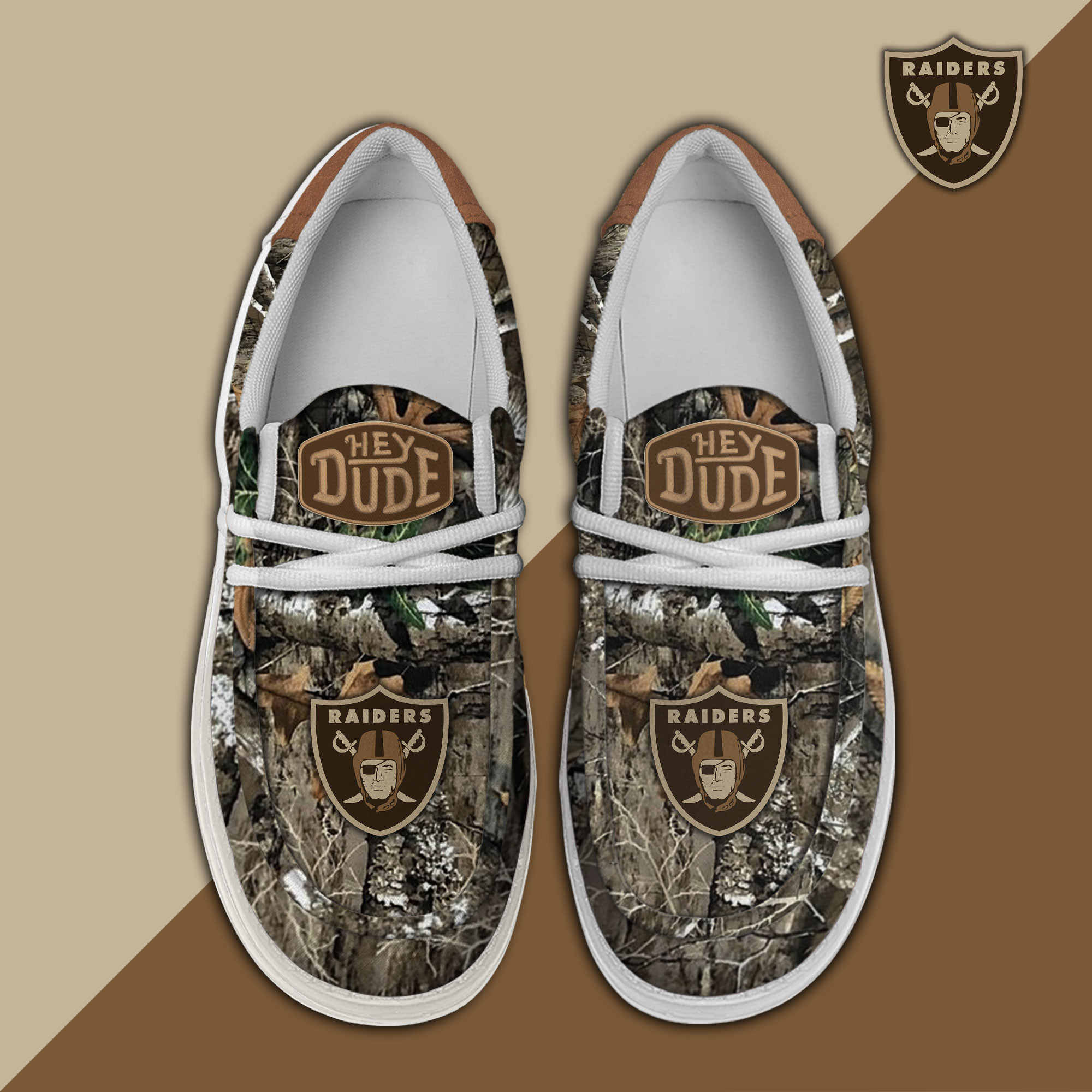 Las Vegas Raiders Camo Hunting Hey Dude Canvas Loafer Shoes
