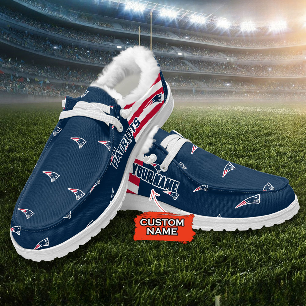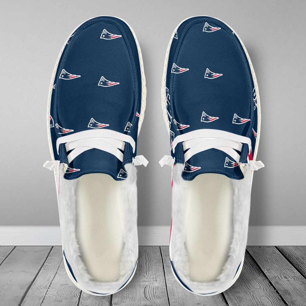 New England Patriots Hey Dude With Warm Fur Lining Shoes