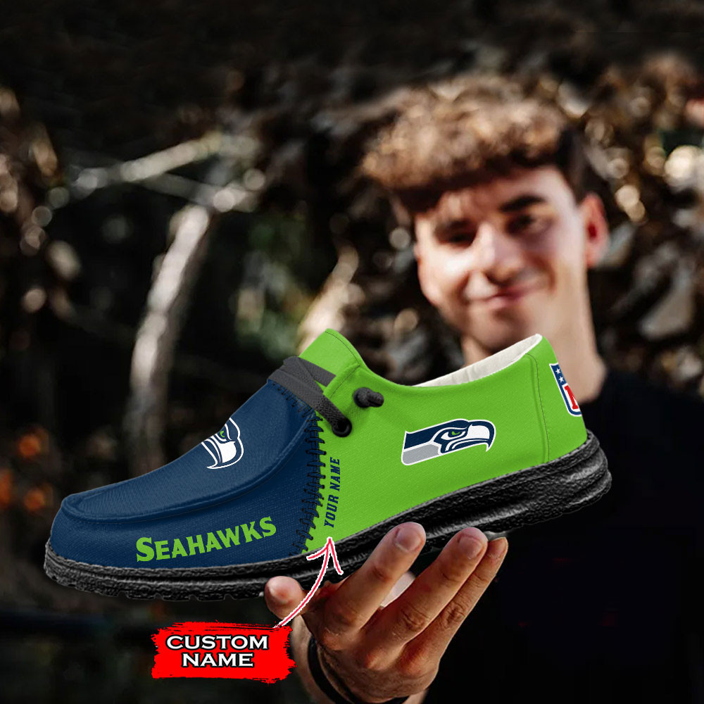 Seattle Seahawks Moccasin Slippers Hey Dude Shoes Printed For Men And Women