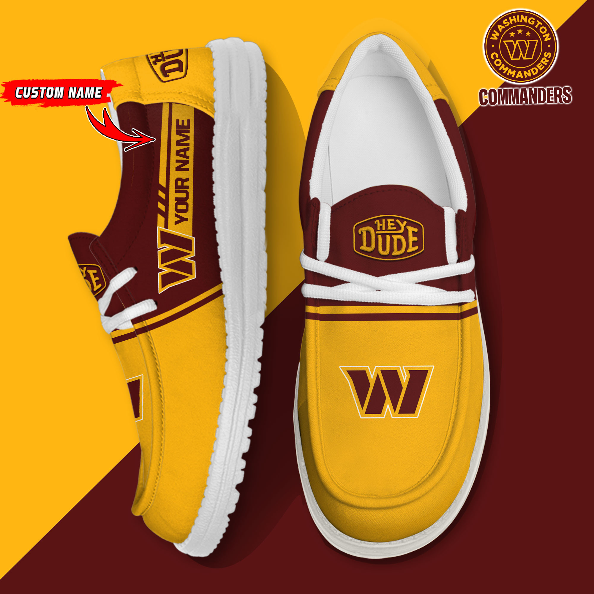 Washington Commanders Football Hey Dude Canvas Loafer Shoes