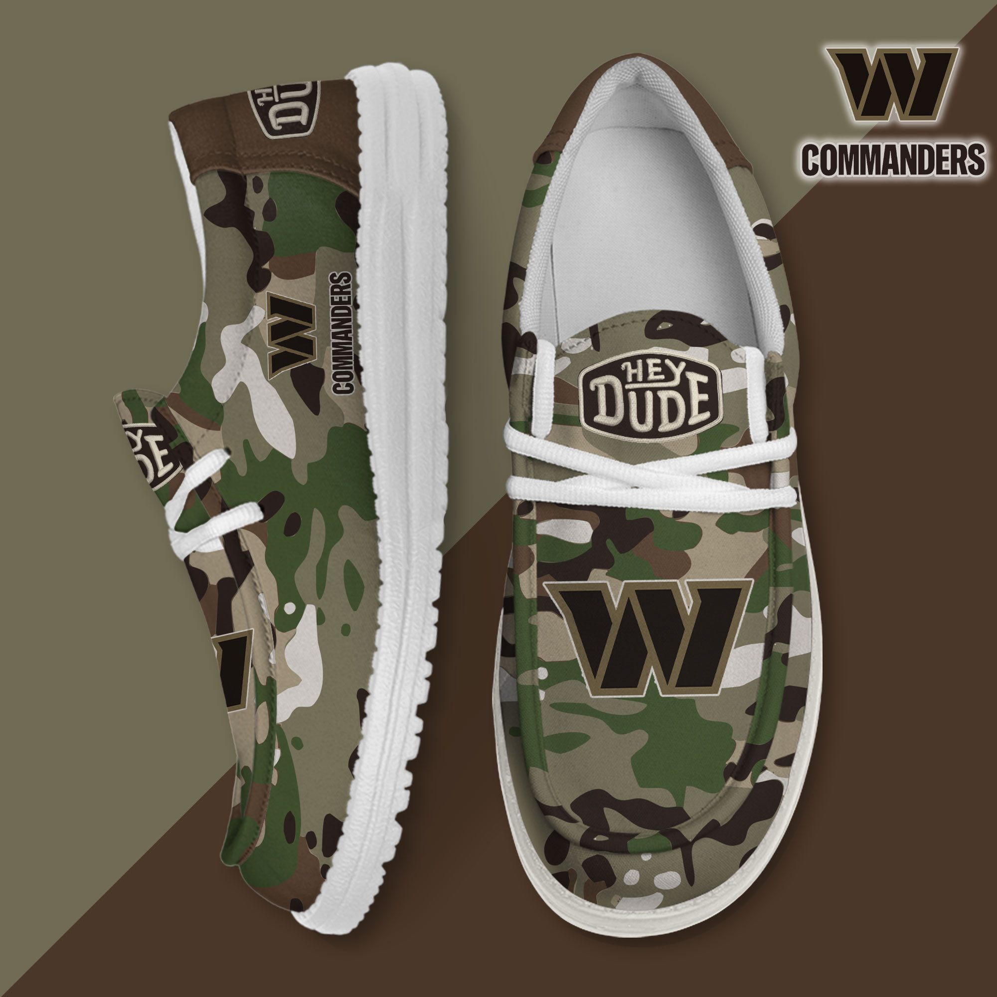 Washington Commanders Camo Hunting Hey Dude Canvas Loafer Shoes