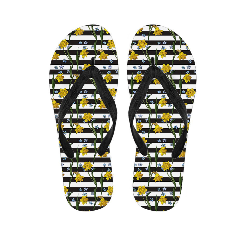 Yellow Daffodil Striped Pattern Print Flip Flops For Men Women