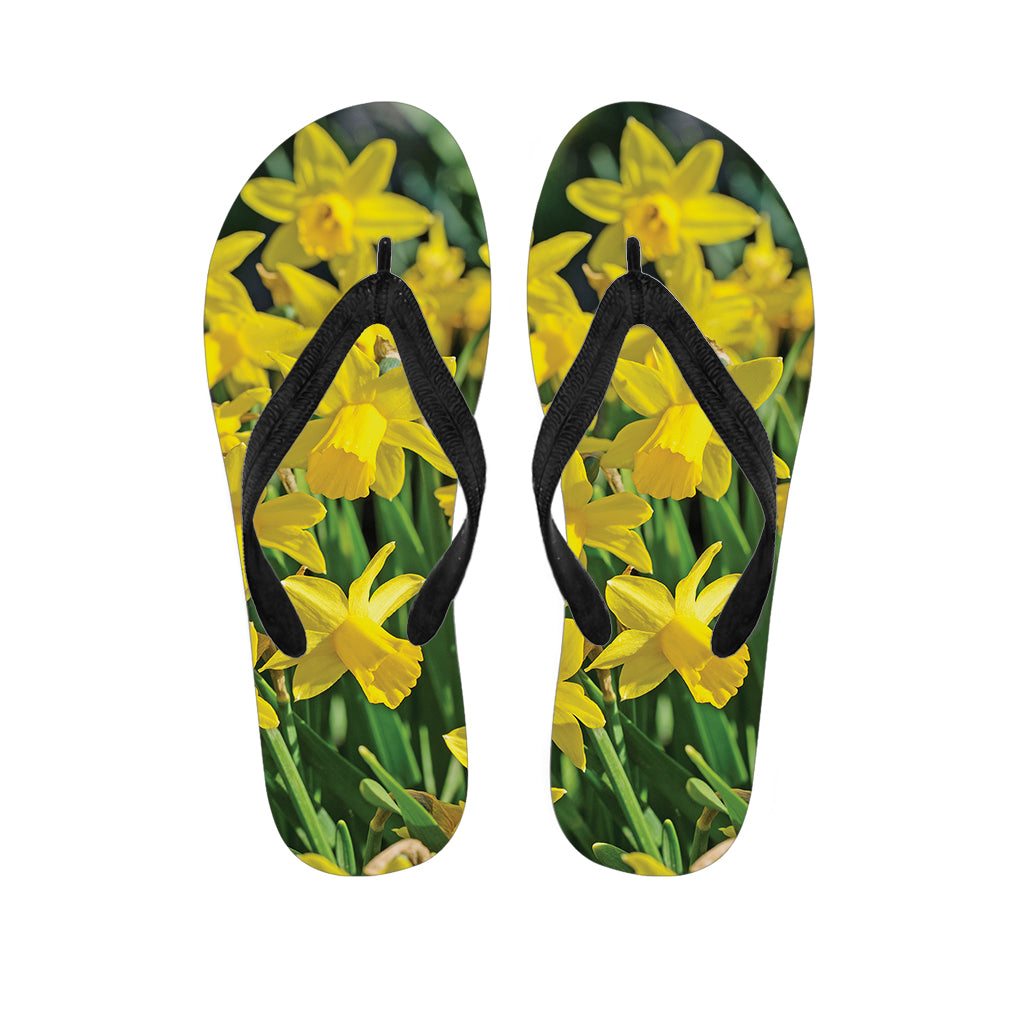Yellow Daffodil Flower Print Flip Flops For Men Women