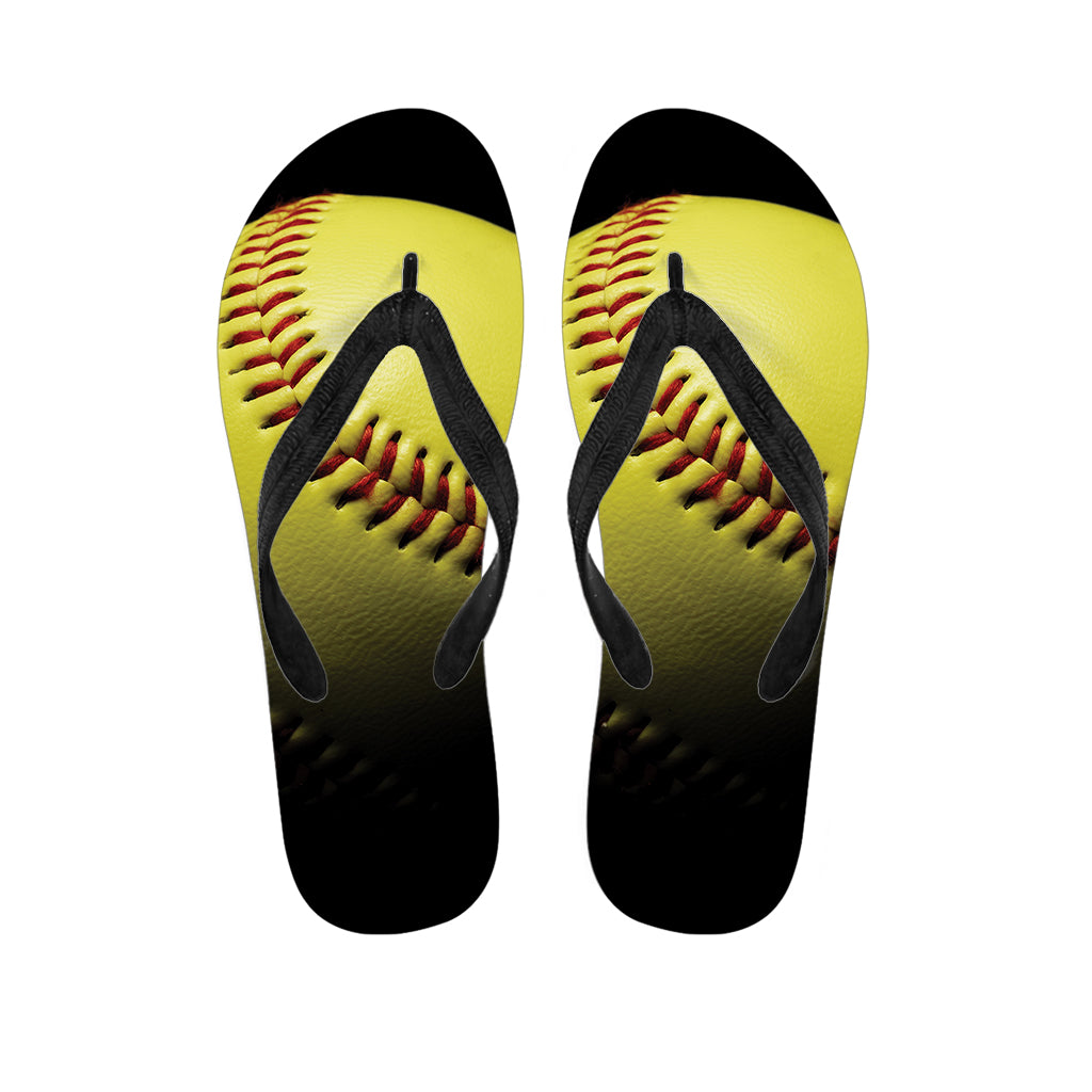 Yellow Softball Ball Print Flip Flops For Men Women