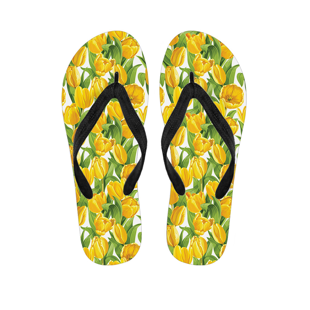 Yellow Spring Tulip Pattern Print Flip Flops For Men Women