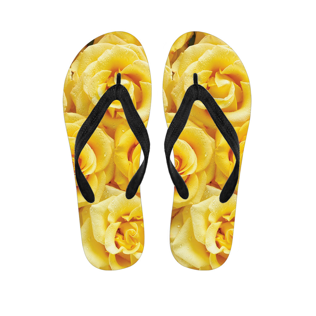 Yellow Rose Print Flip Flops For Men Women