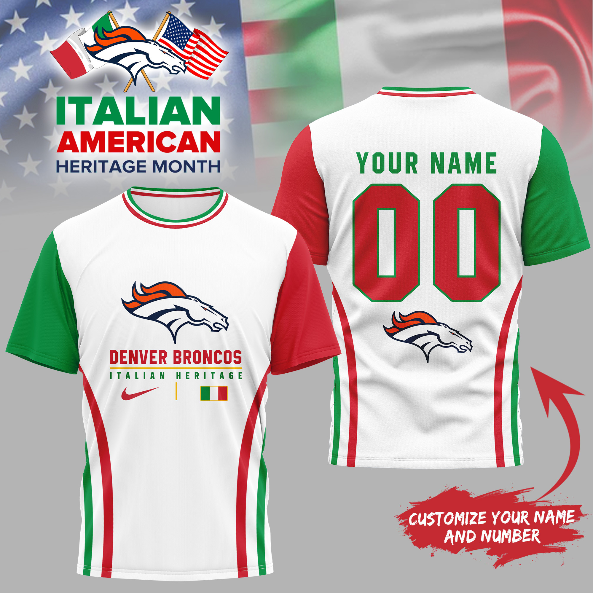 Denver Broncos Premium Nfl Italian Heritage 3D Shirt Hi