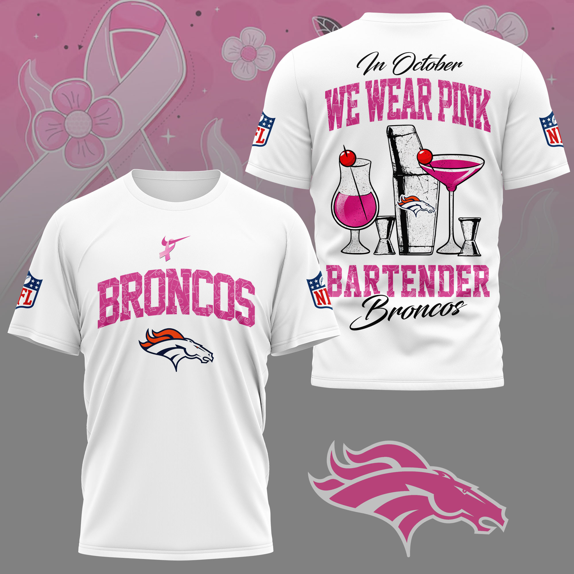 Denver Broncos Premium Nfl Bartender October Breast Cancer Awareness 3D Shirt