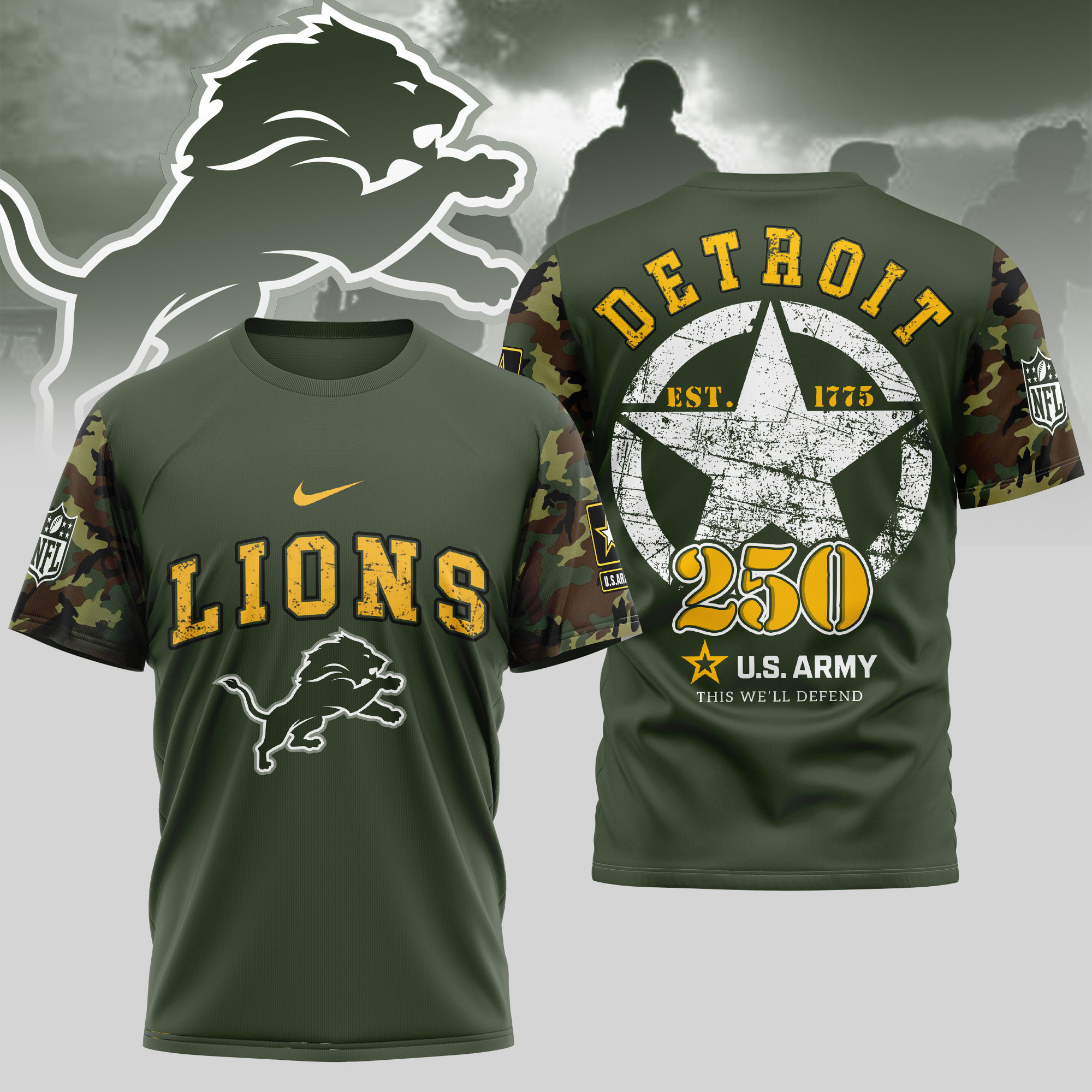 Detroit Lions Premium U.S.Army 3D Shirt