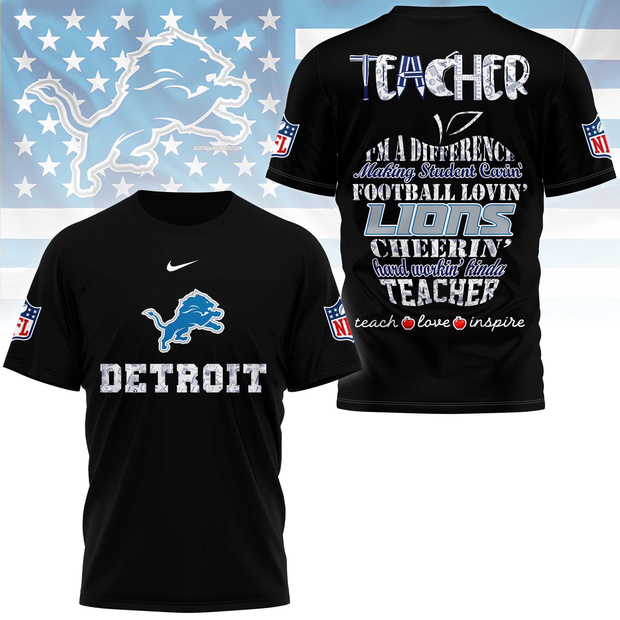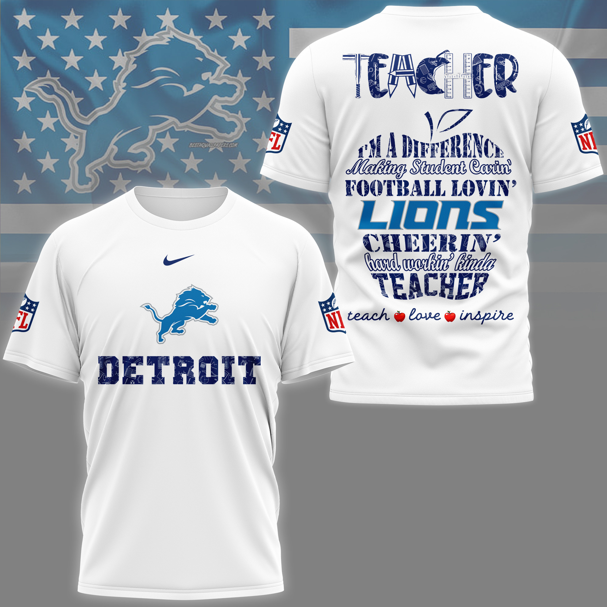 Detroit Lions Premium Teacher Pride 3D Shirt
