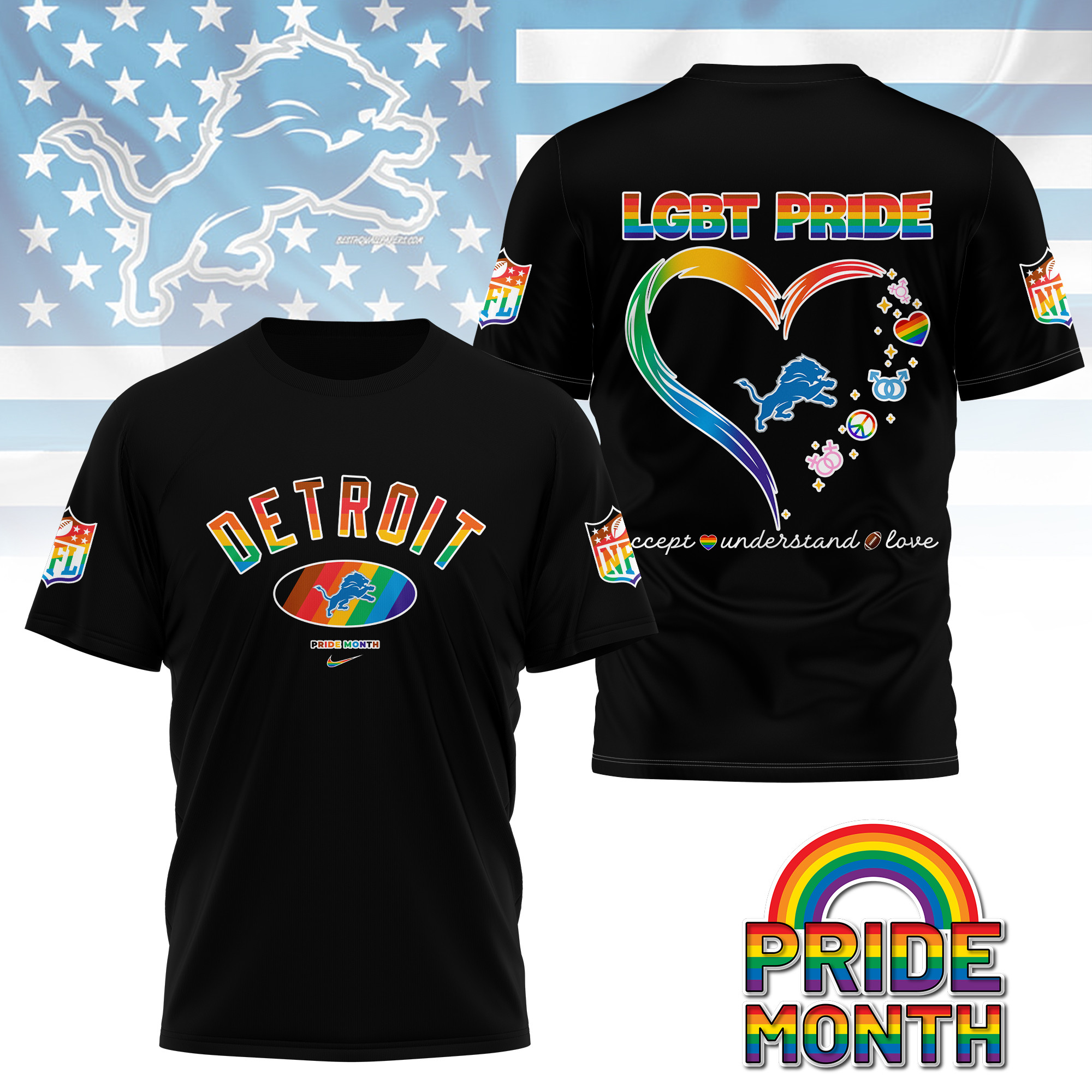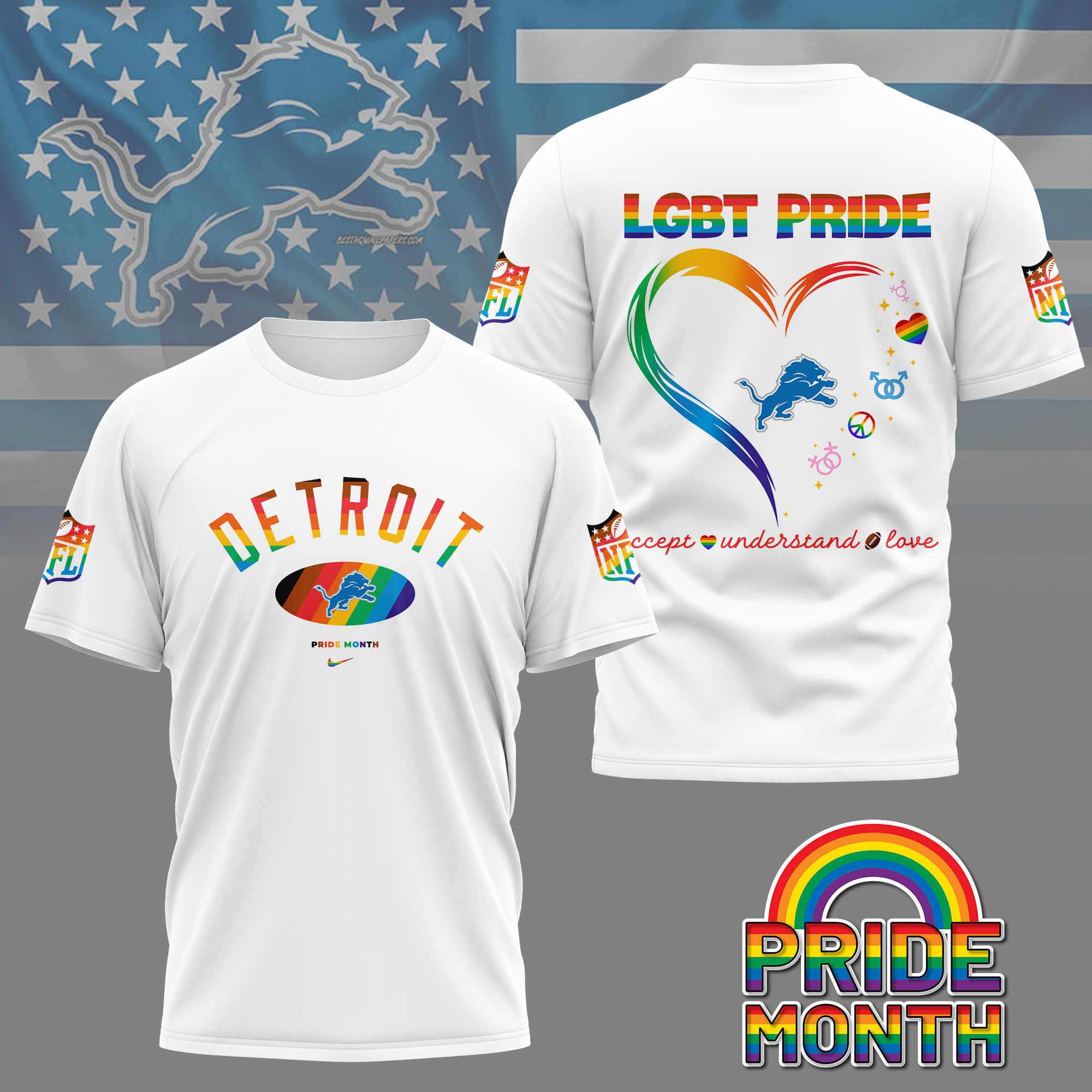 Detroit Lions Premium Pride Month 3D Shirt