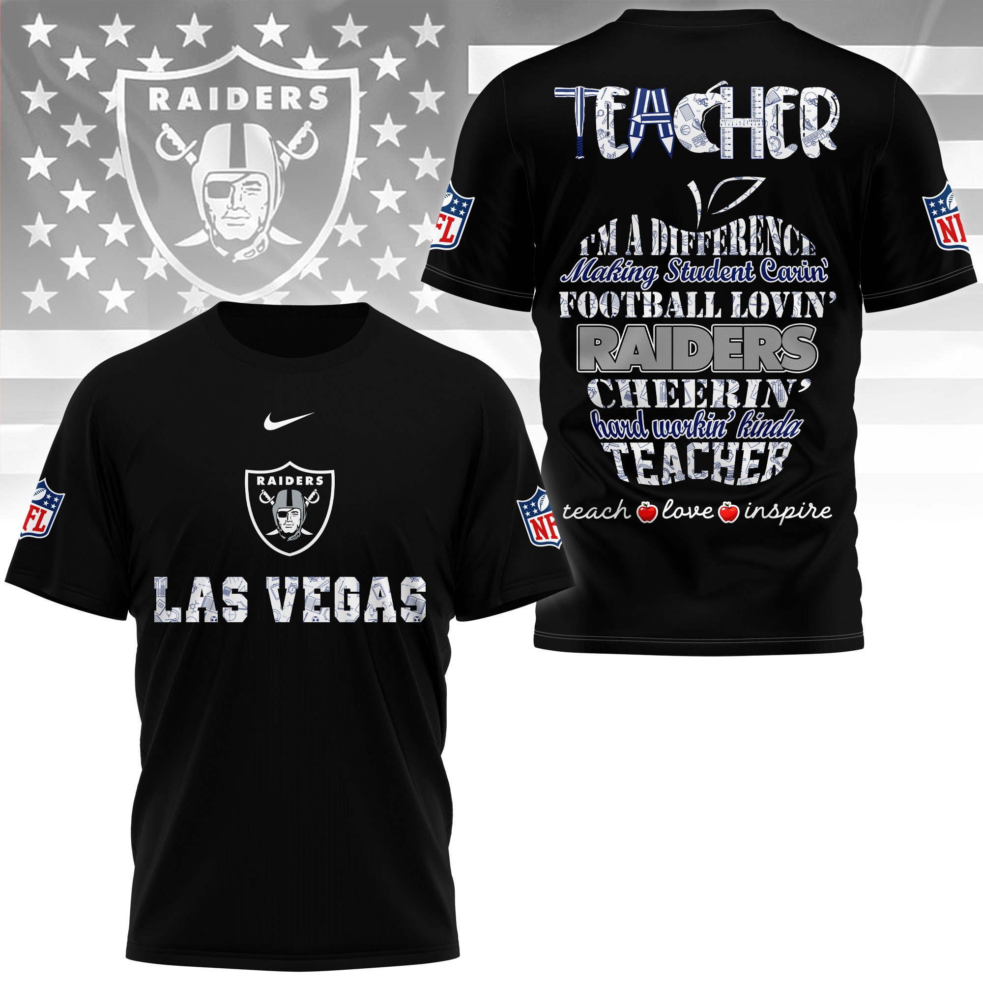 Las Vegas Raiders Premium Teacher Pride 3D Shirt