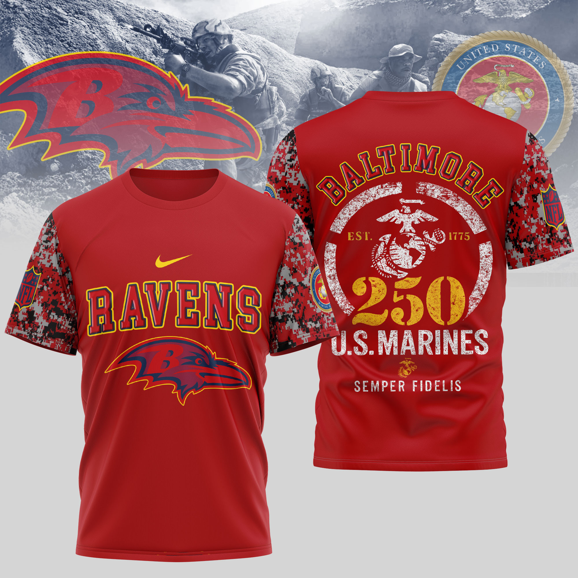 Baltimore Ravens Premium U.S.M.C 250 Years Semper Fi 3D Shirt