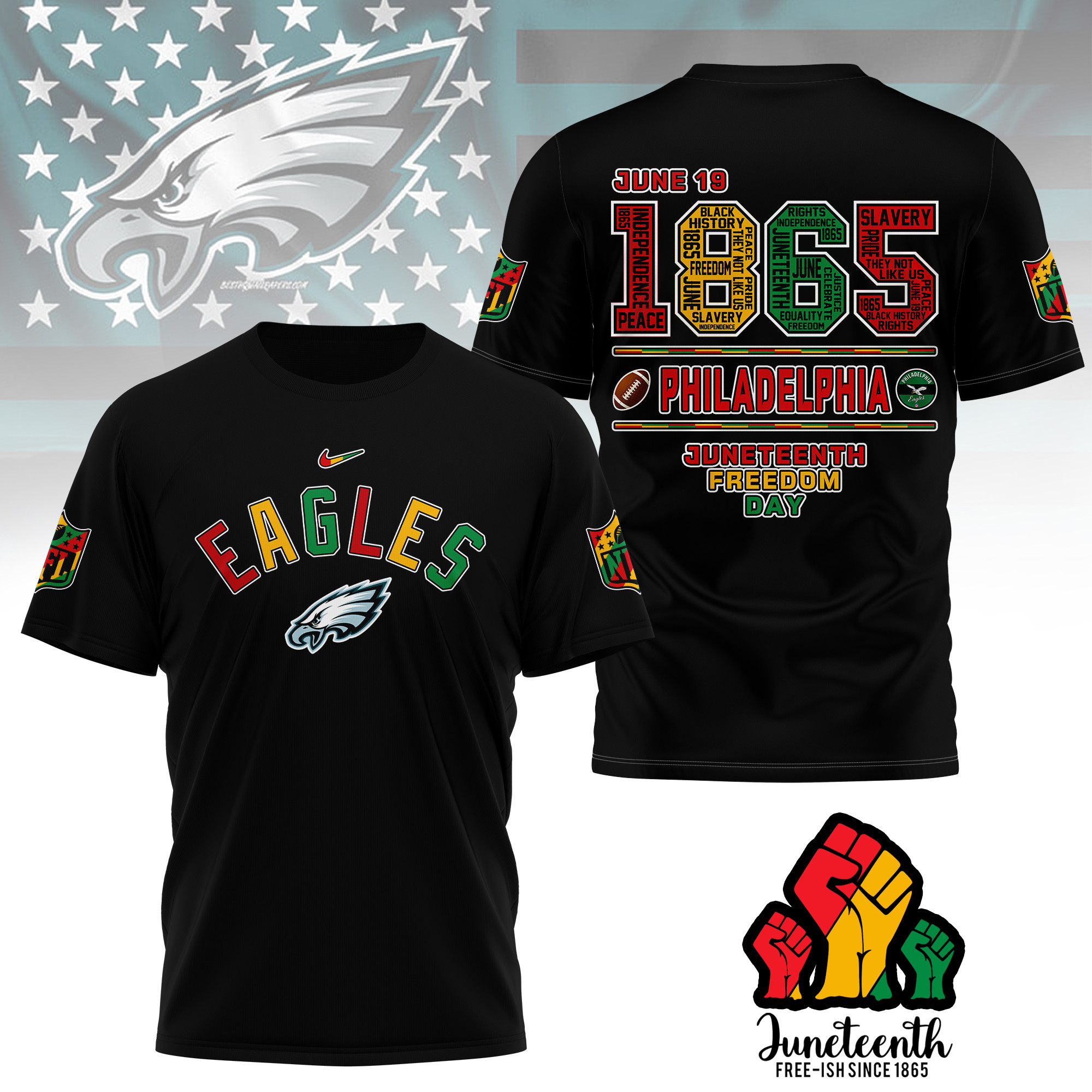 Philadelphia Eagles Premium Juneteenth Freedom Day 3D Shirt