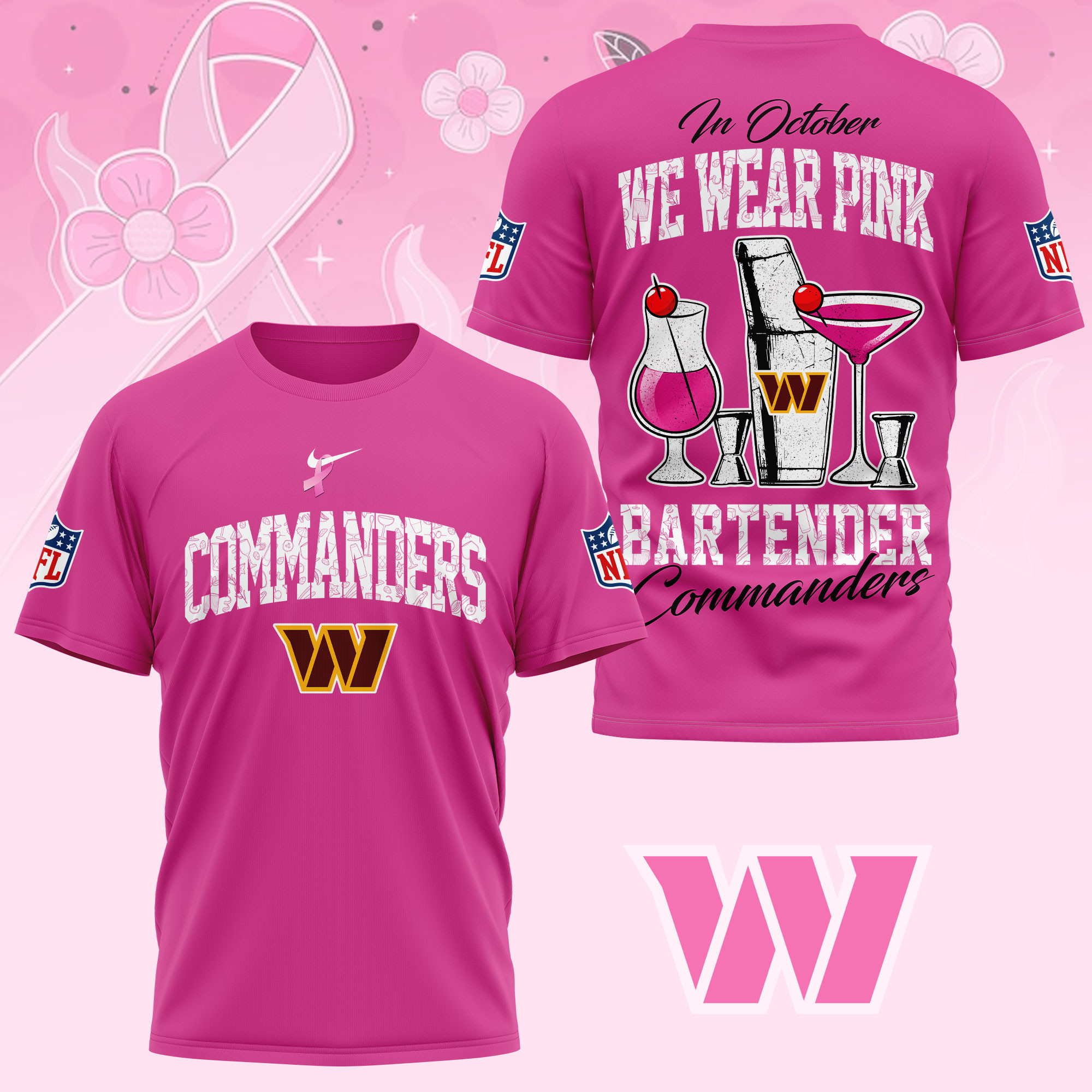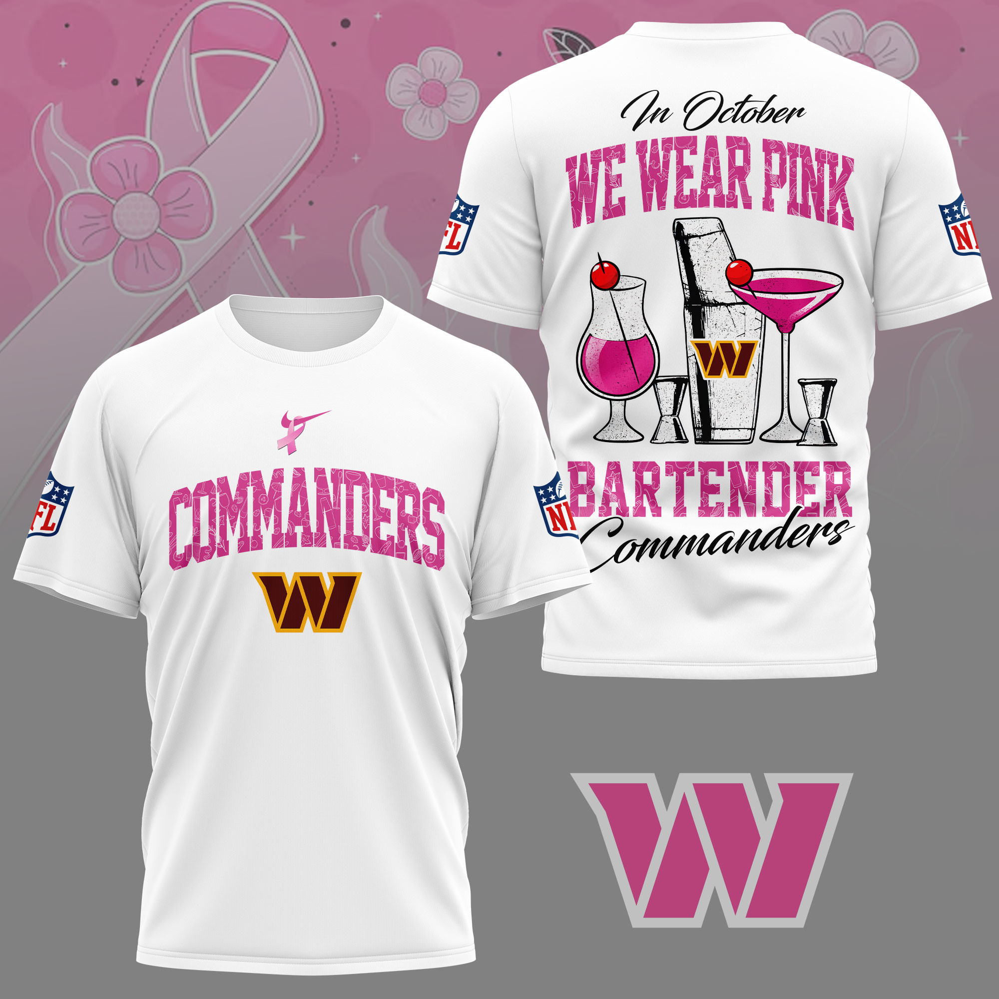 Washington Commanders Premium Nfl Bartender October Breast Cancer Awareness 3D Shirt