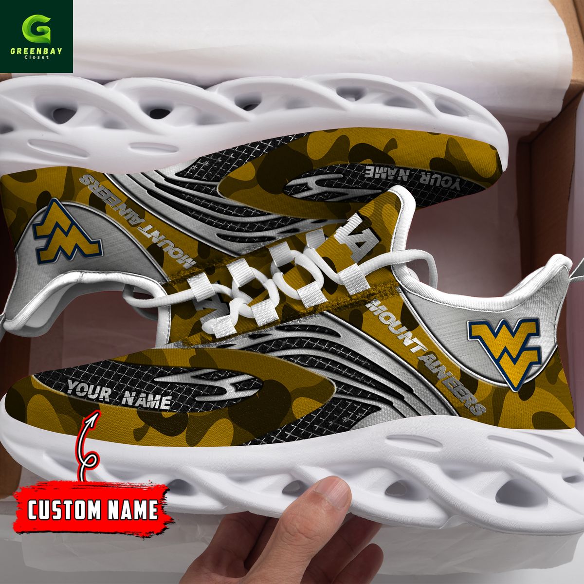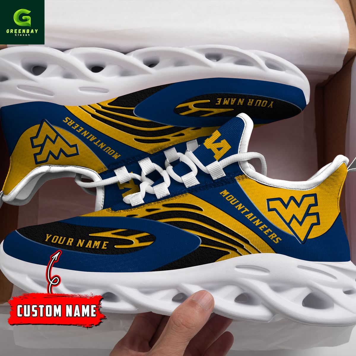 West Virginia Mountaineers Max Soul Shoes Sneakers Printed White And Black Sole For Men And Women