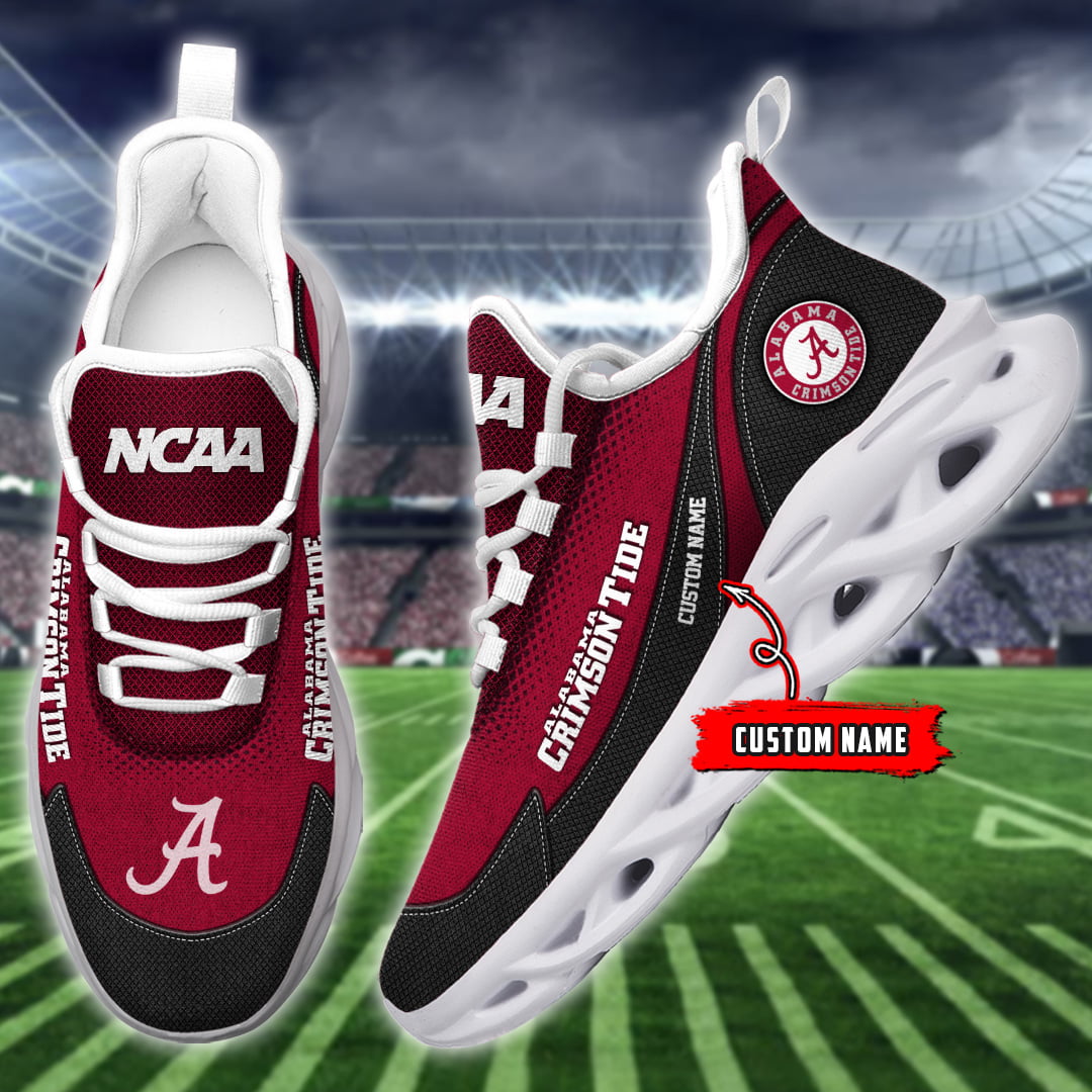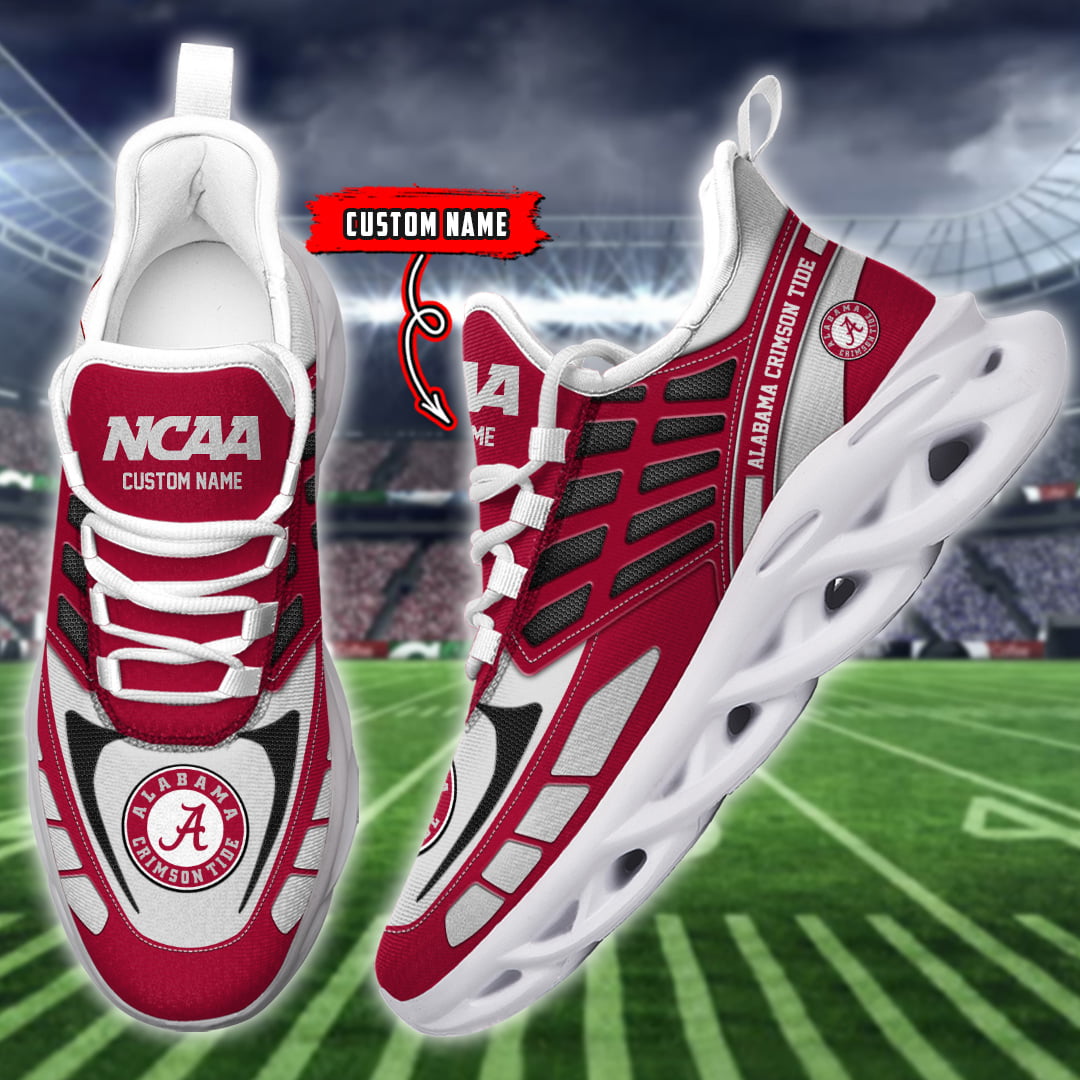 Alabama Crimson Tide NCAA Max Soul Shoes Sneakers Printed White And Black Sole For Men And Women