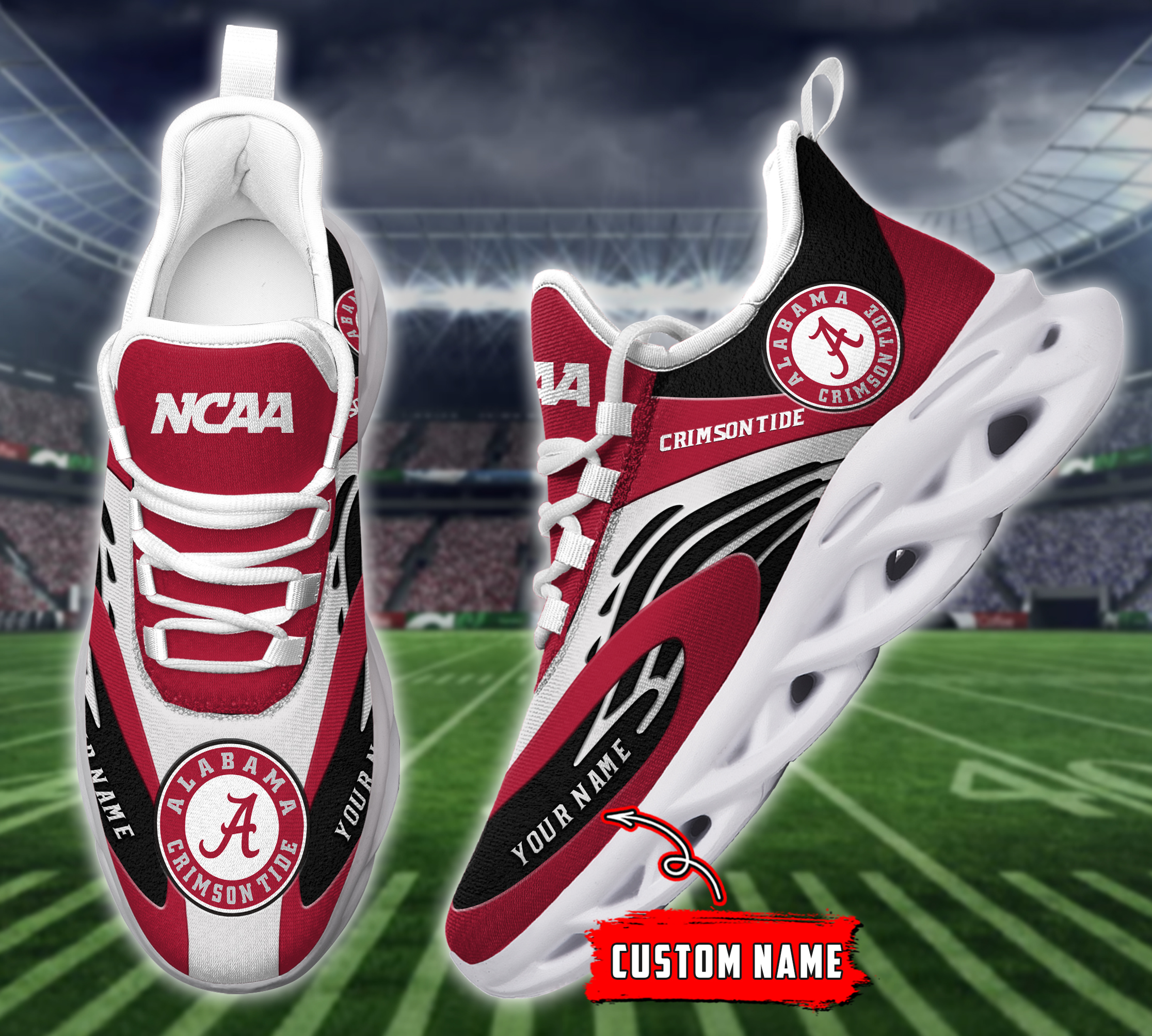 Alabama Crimson Tide NCAA Max Soul Shoes Sneakers Printed White And Black Sole For Men And Women