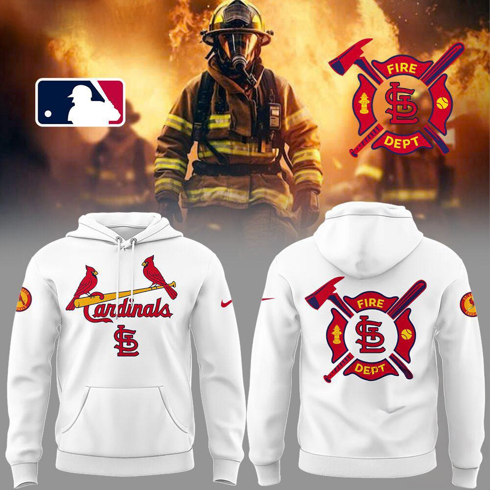 St. Louis Cardinals x Firefighter Appreciation Night 2025 White Hoodie Basketball Lovers Gifts