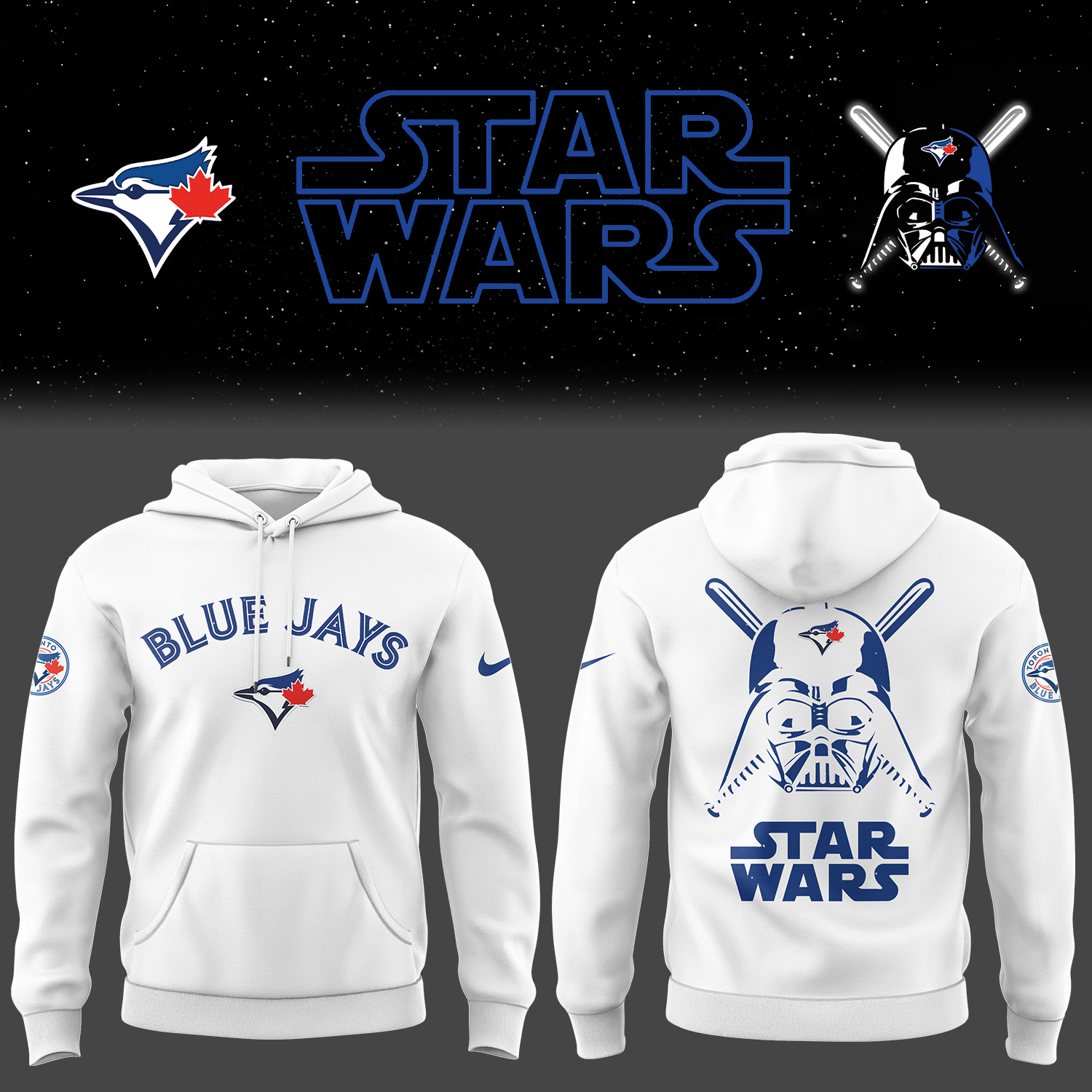Blue Jays Baseball 2025 Blue Jays x Star Wars White Hoodie Baseball Coach Gift Ideas