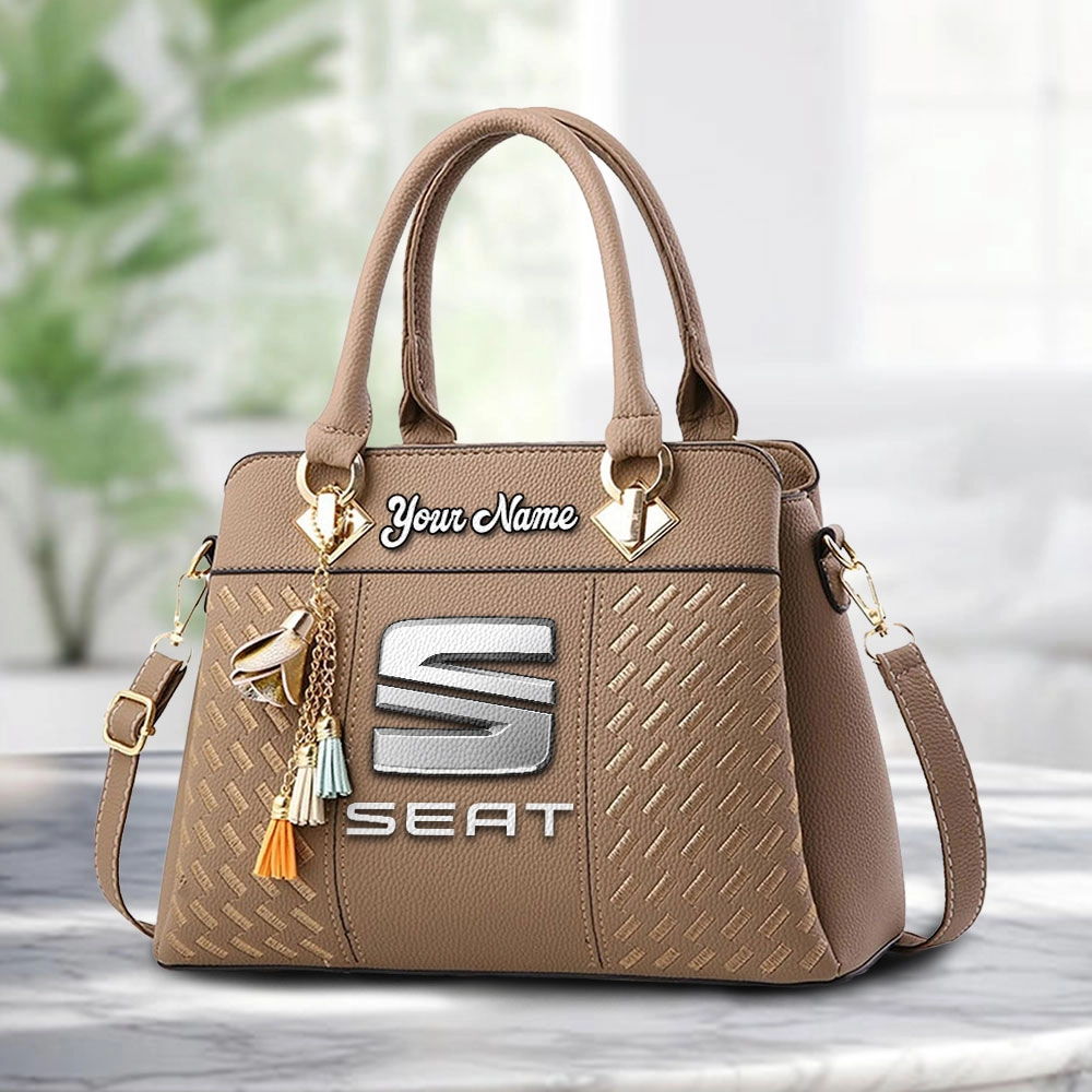 SEAT Logo Crossbody Zip Hand Bag With Tassel Custom Name For Women